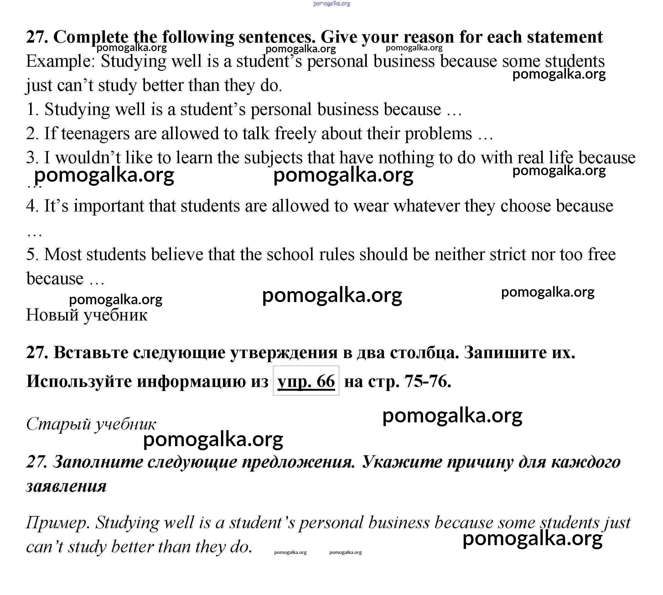 Готовые ответы - Английский язык 7 класс Enjoy English Биболетова М.З. - homework unit 3 27
