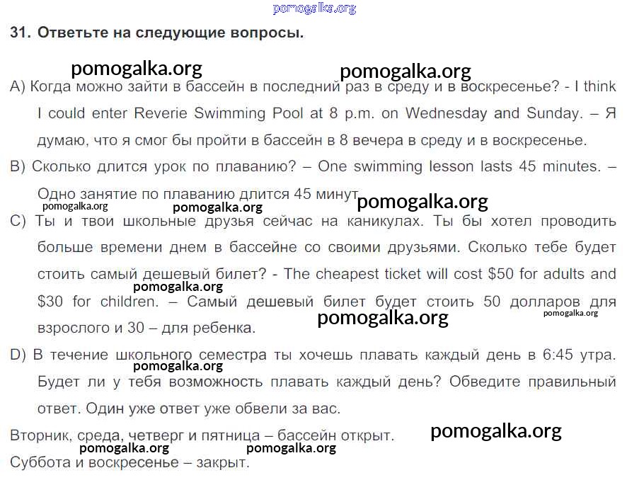 Готовые ответы - Английский язык 7 класс Enjoy English Биболетова М.З. - exercise unit 4 31