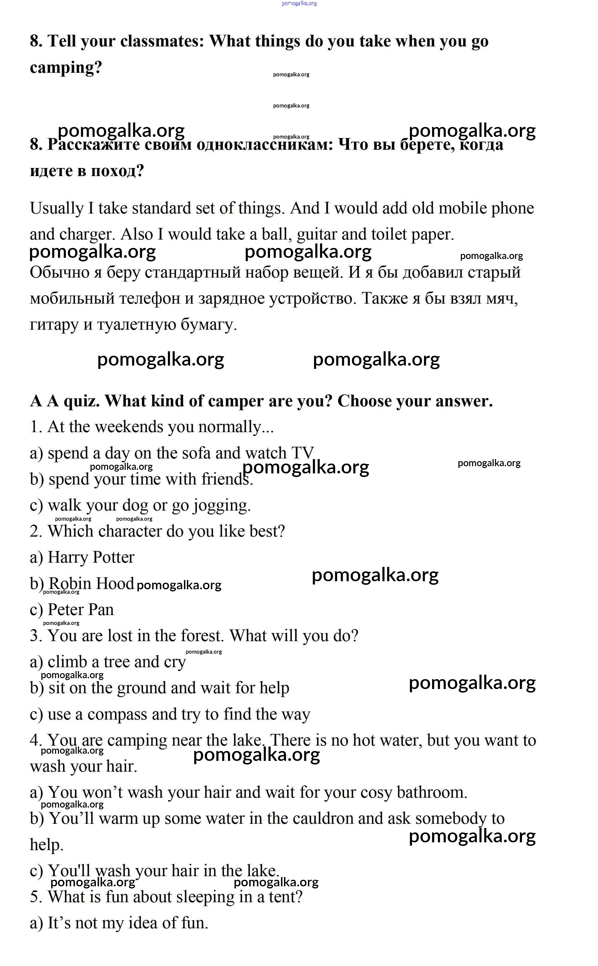 Готовые ответы - Английский язык 7 класс Кауфман - lesson 2 unit 2. gamping: is it for you 8