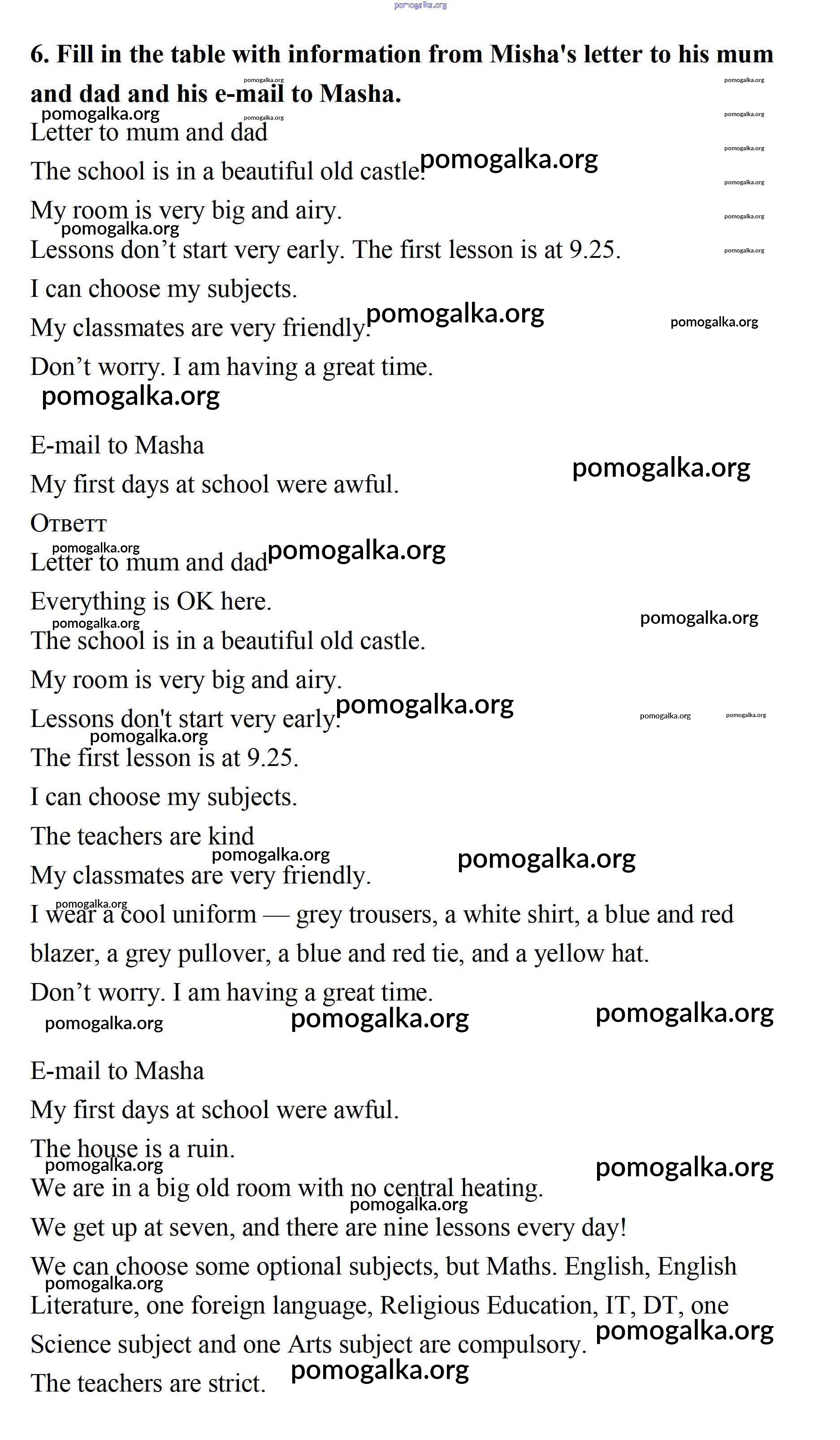 Готовые ответы - Английский язык 7 класс Кауфман - lesson 4 unit 6. school 6