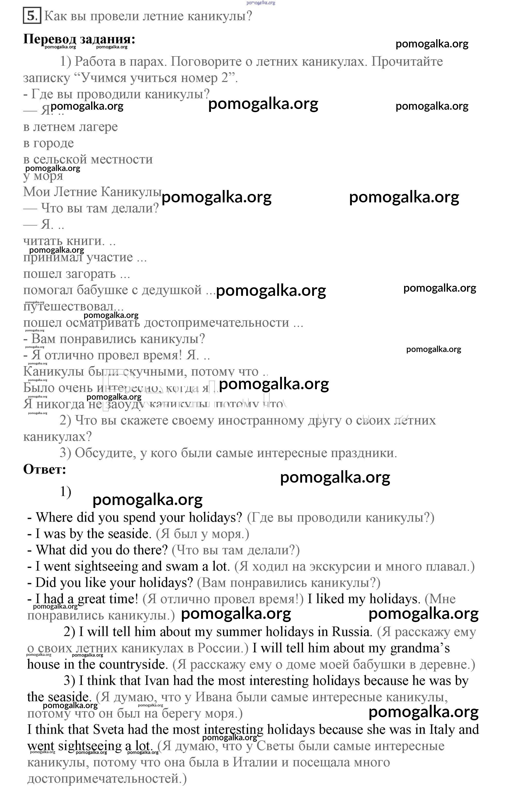 Готовые ответы - Английский язык 7 класс Кузовлёв В.П. - lesson 1 unit 1 5