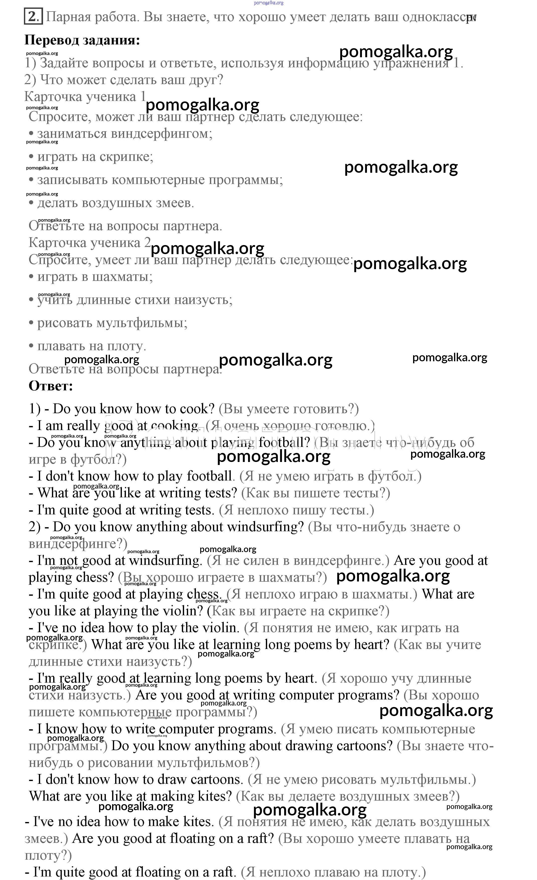 Готовые ответы - Английский язык 7 класс Кузовлёв В.П. - lesson 5 unit 2 2