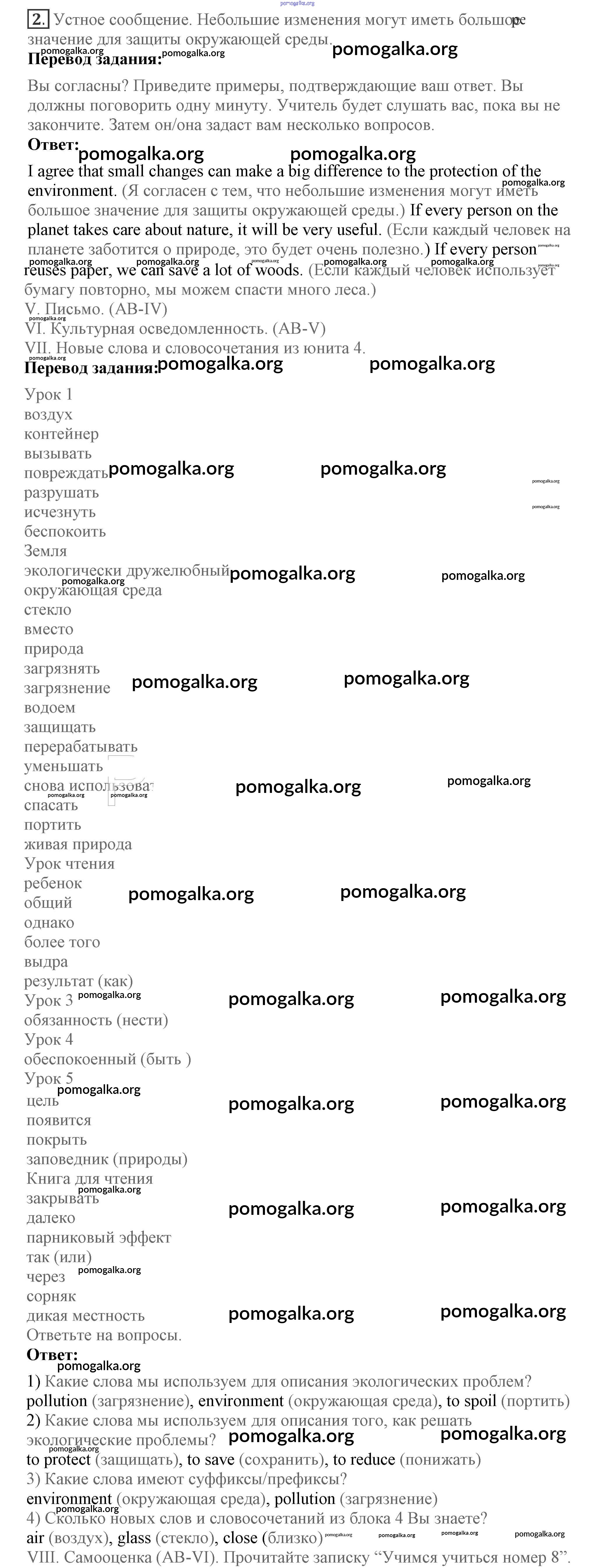 Unit 4. Are you a friend of the planet? Lessons 1-7