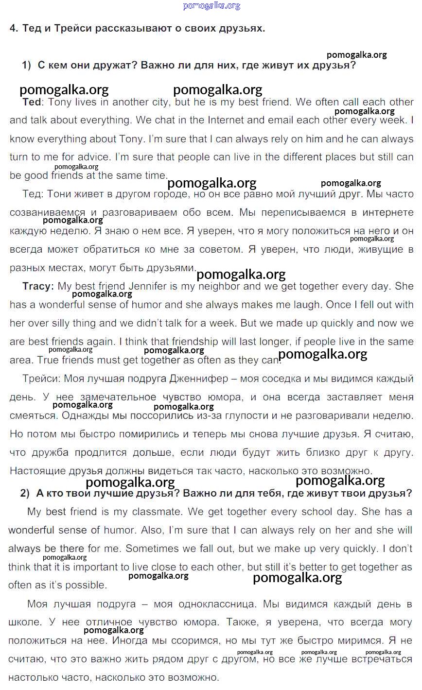 Готовые ответы - Английский язык 7 класс Кузовлёв В.П. - lesson 1 unit 5 4
