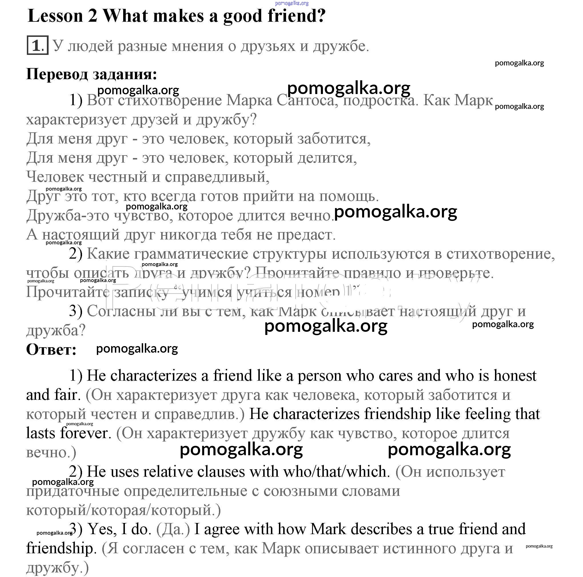 Готовые ответы - Английский язык 7 класс Кузовлёв В.П. - lesson 2 unit 5 1