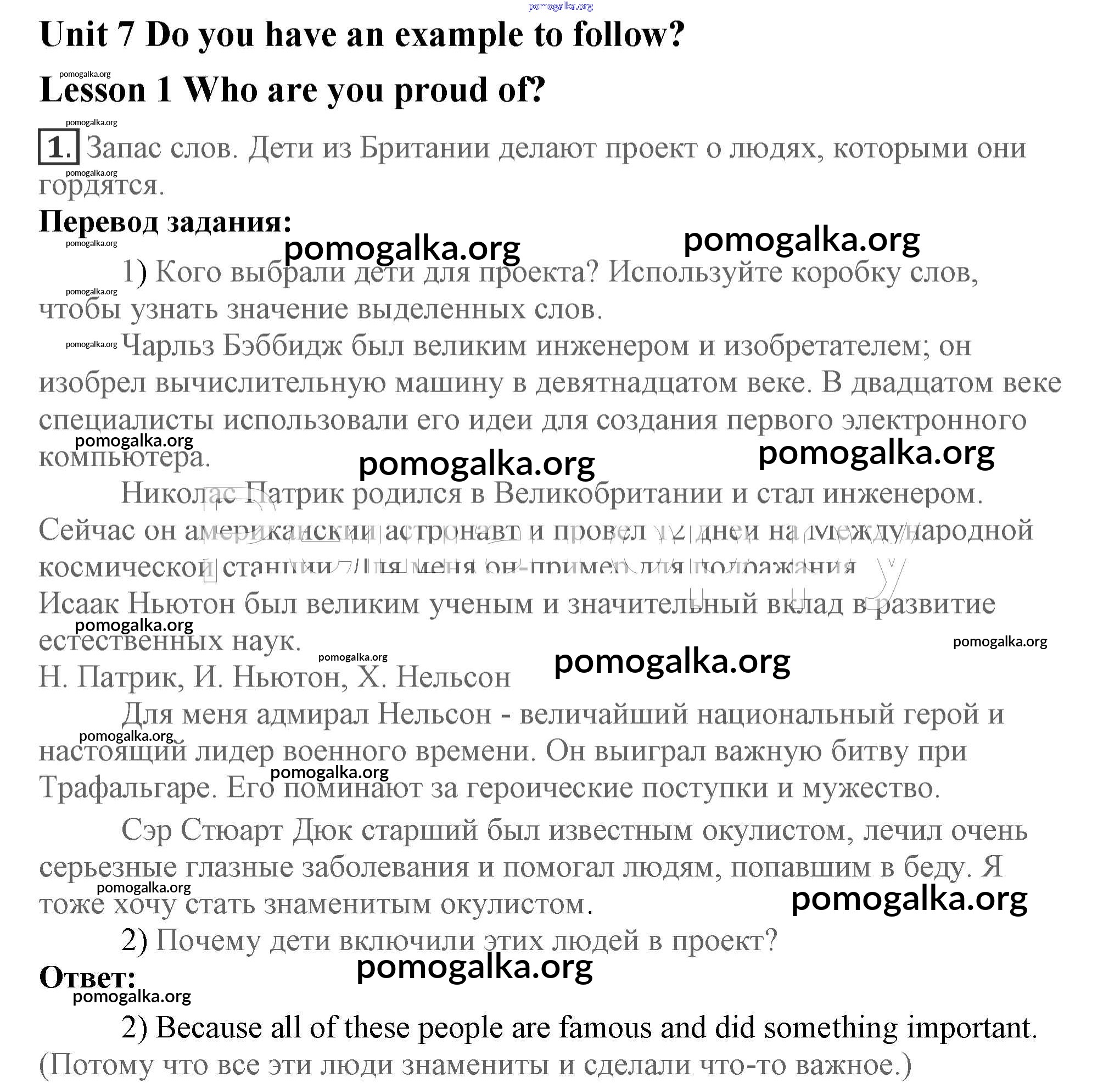 Unit 7. Do you have an example to follow? Lessons 1-8