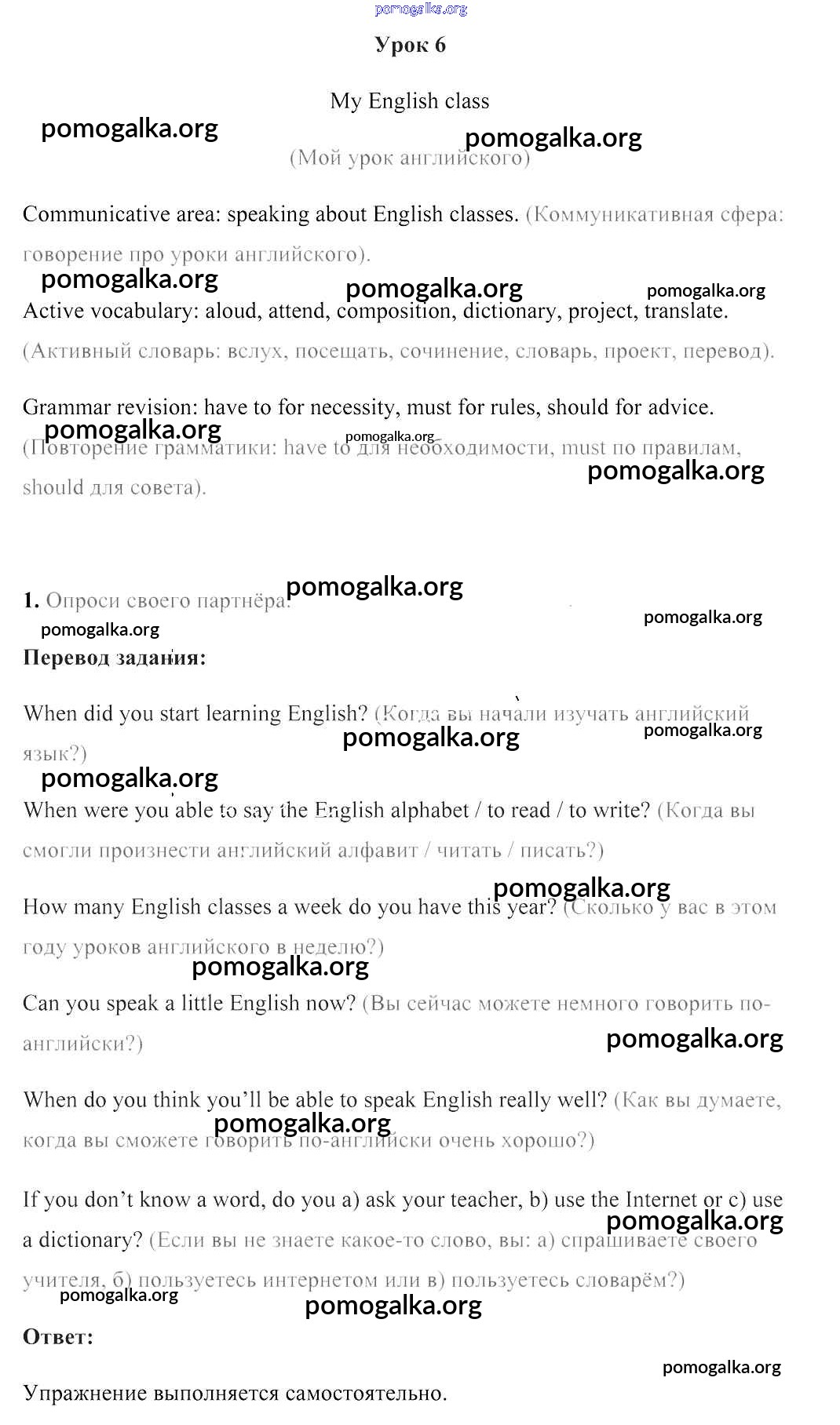 Структурированное пособие на каждый урок