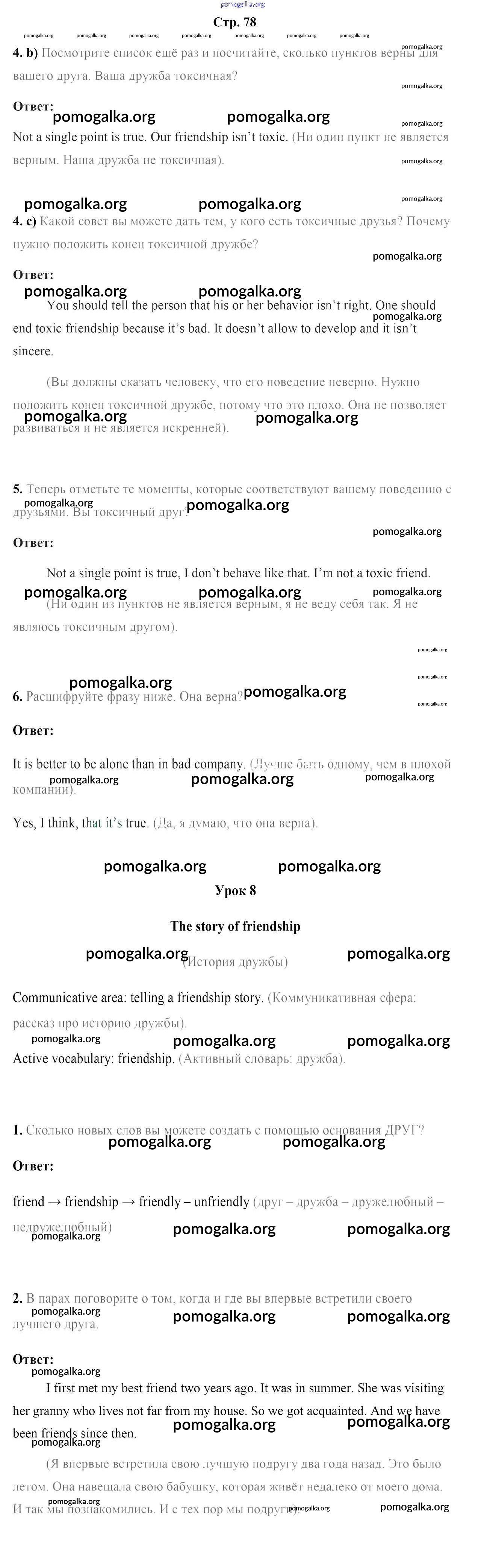 Готовые ответы - Английский язык 7 класс Юхнель Н.В. - страница 78