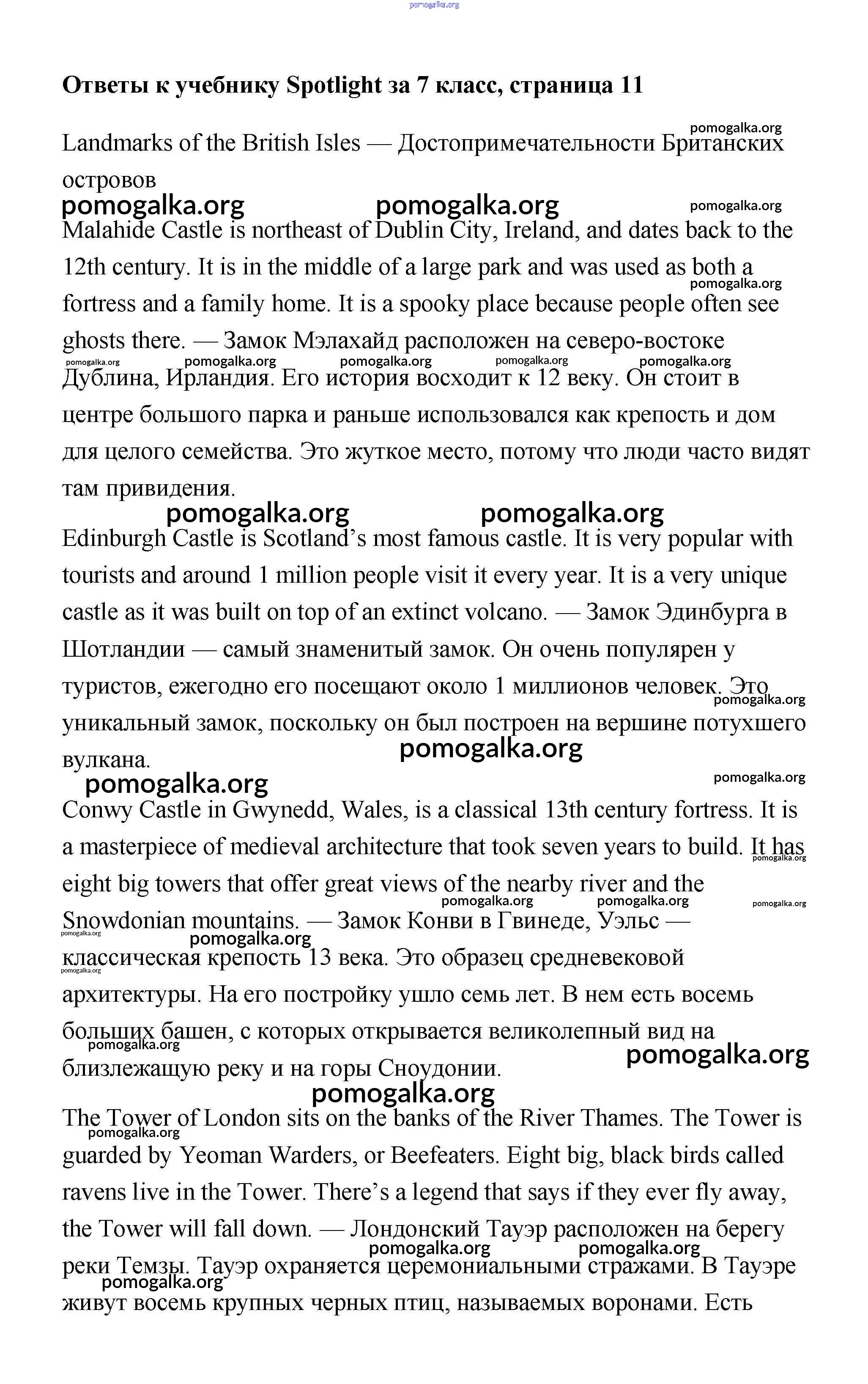 Готовые ответы - Английский язык 7 класс Ваулина Spotlight - часть 1d. Culture Corner модуль 1 1