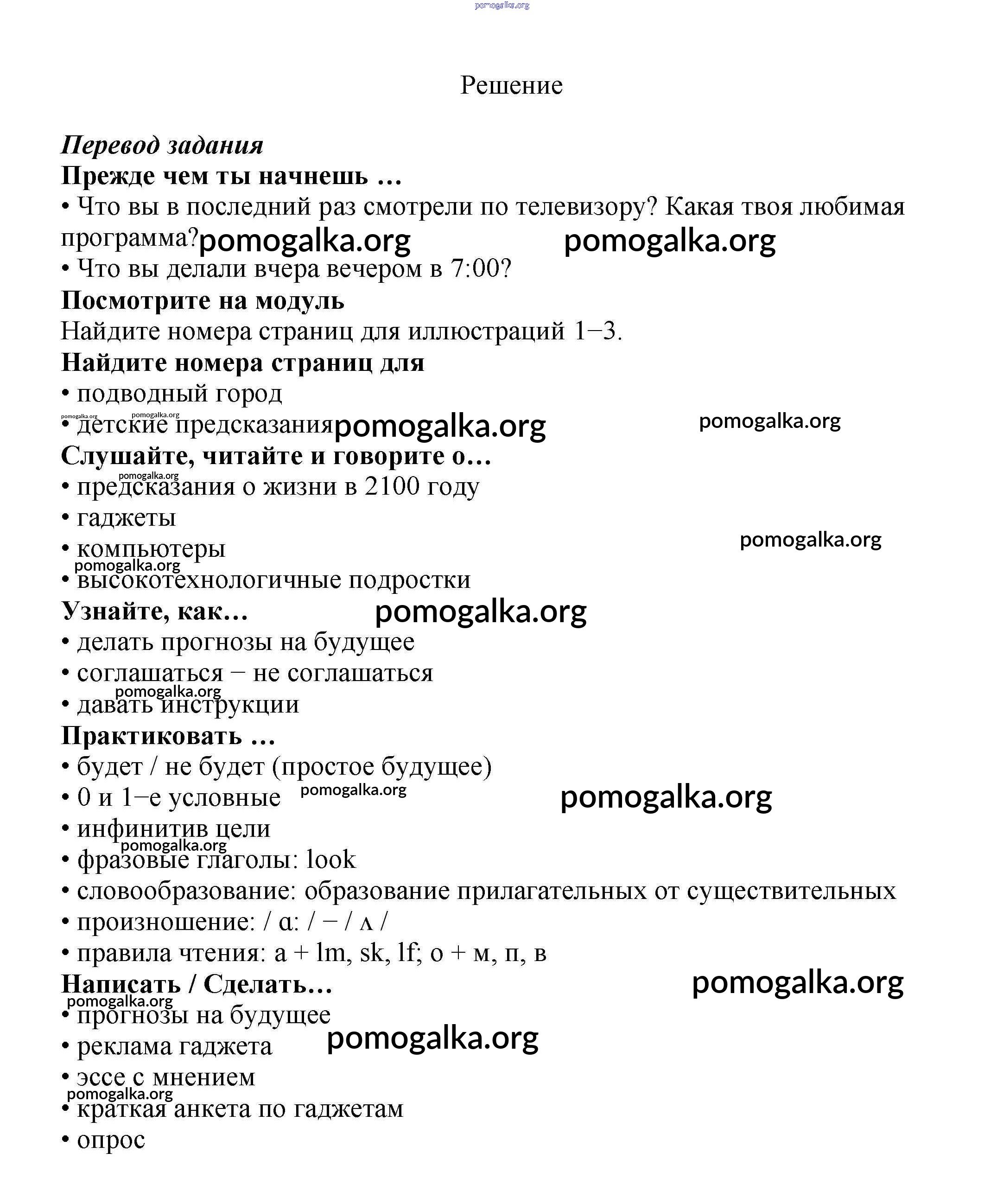 Готовые ответы - Английский язык 7 класс Ваулина Spotlight - модуль 5 Spotlight What the future holds