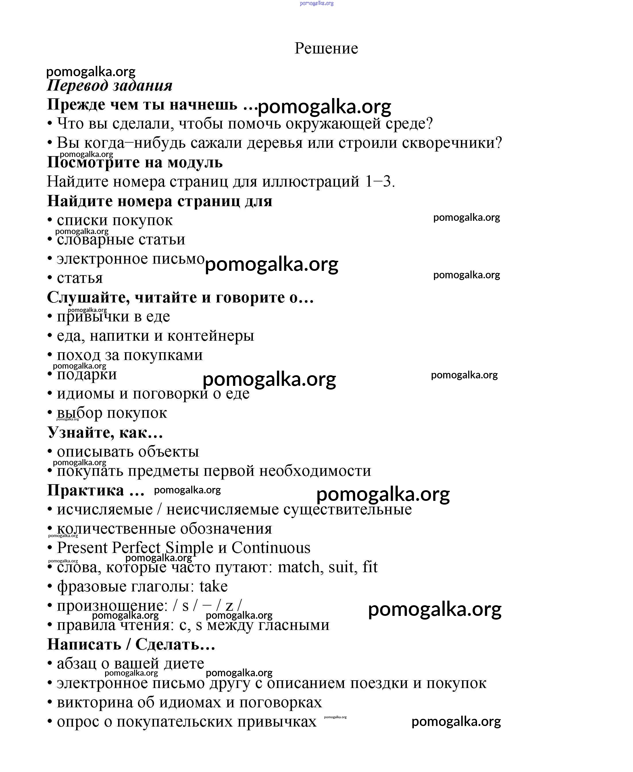 Готовые ответы - Английский язык 7 класс Ваулина Spotlight - модуль 9 Spotlight Shopping time