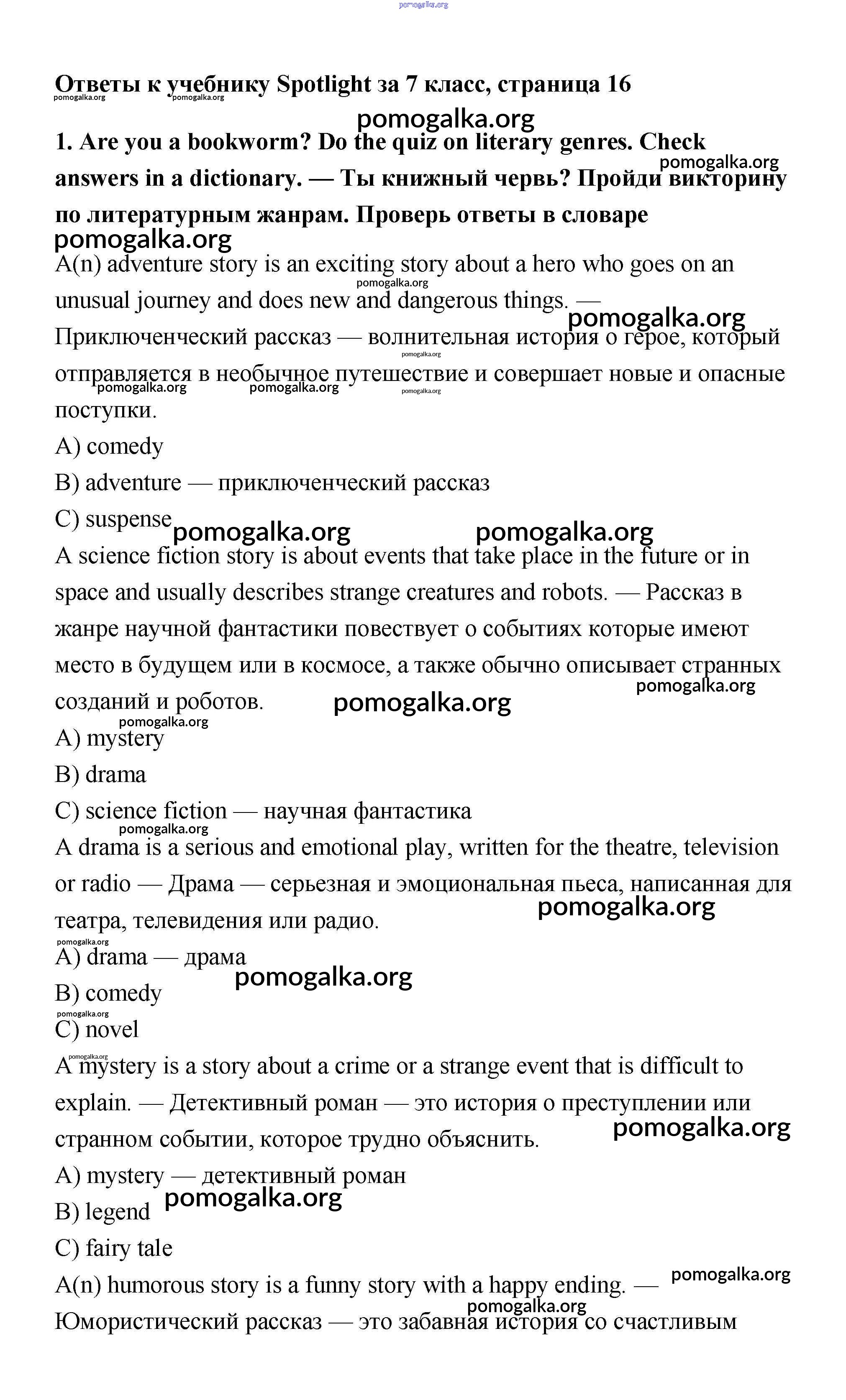 Готовые ответы - Английский язык 7 класс Ваулина Spotlight - часть 2a модуль 2 1
