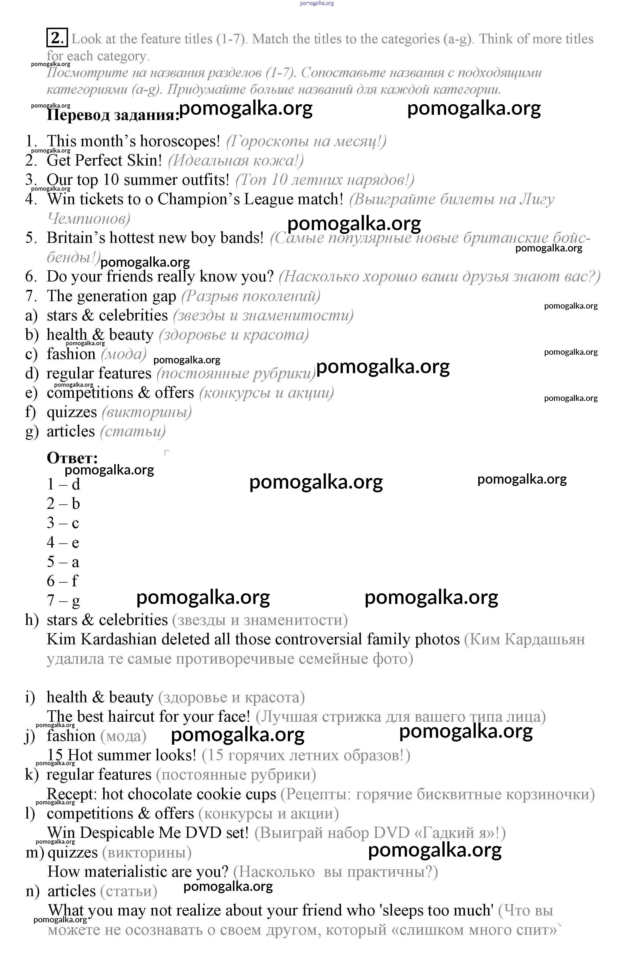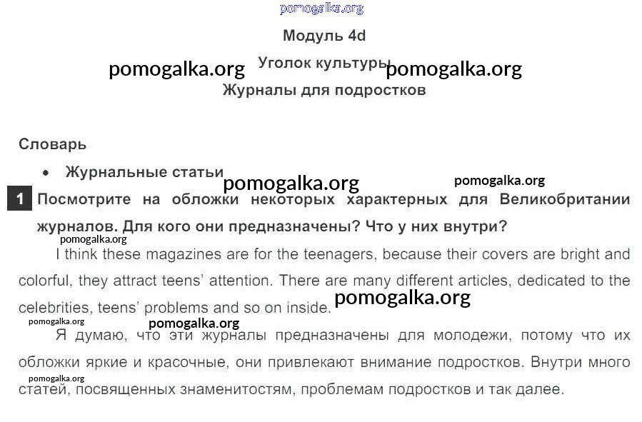 Готовые ответы - Английский язык 7 класс Ваулина Spotlight - часть 4d. Culture Corner модуль 4 2