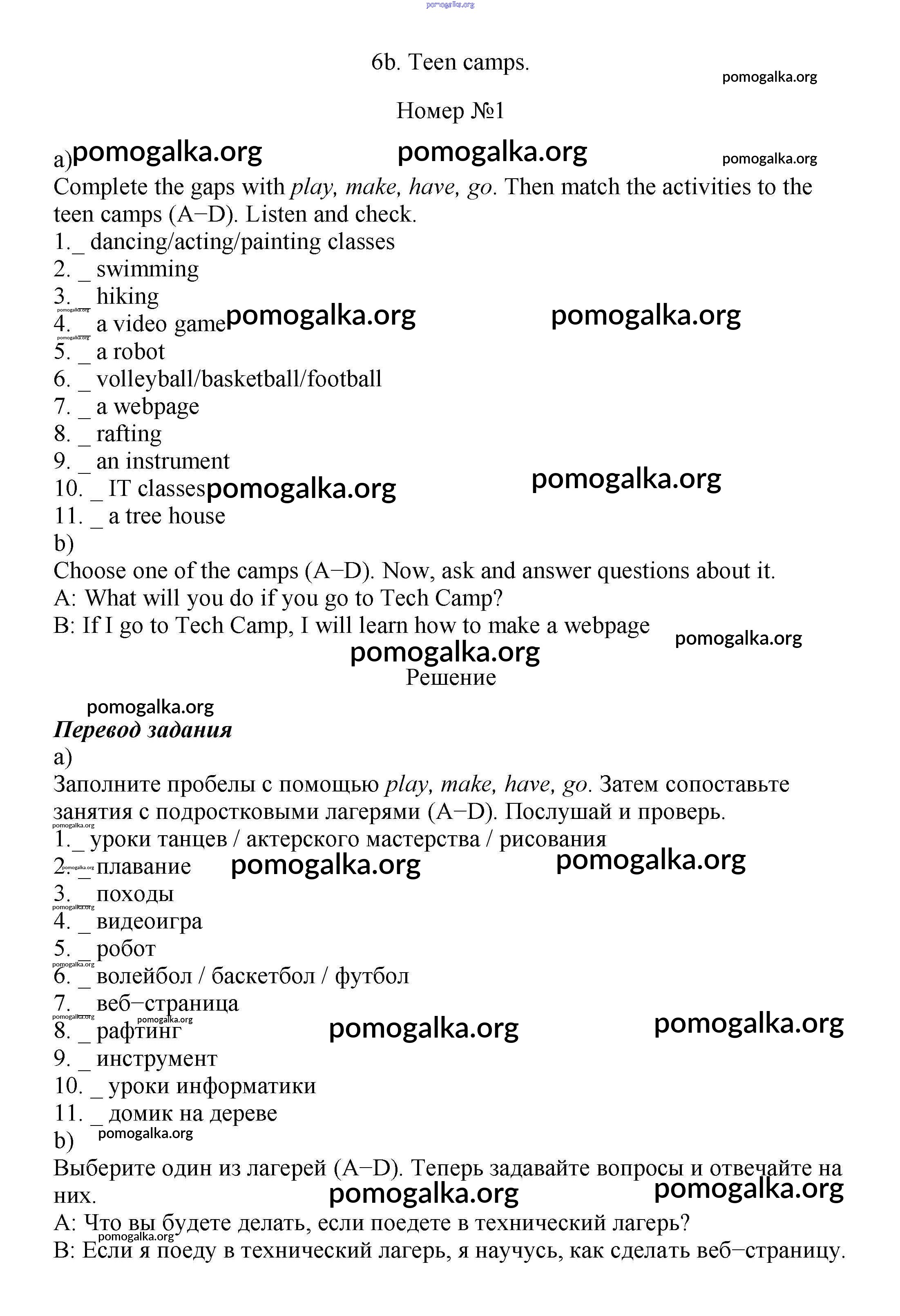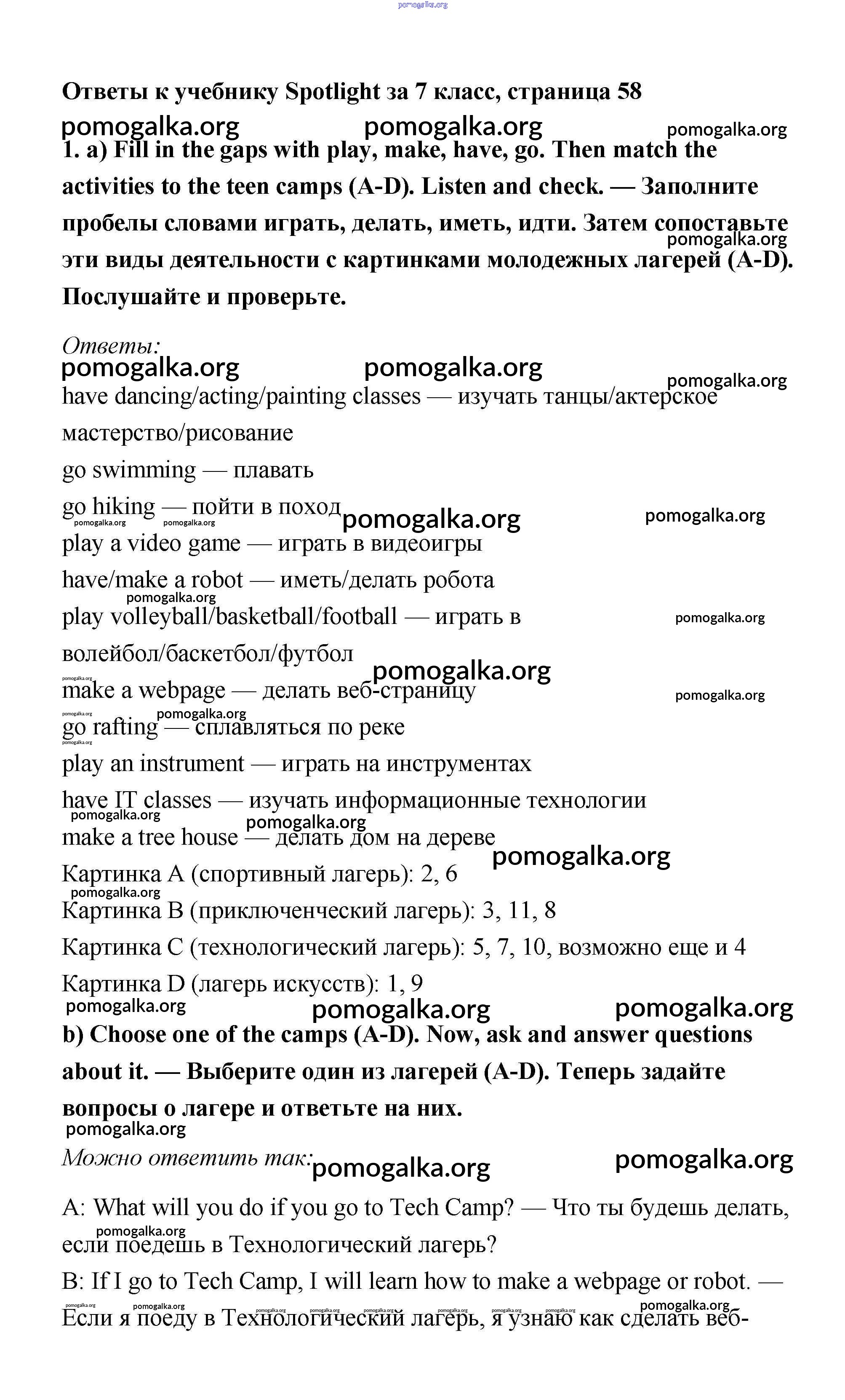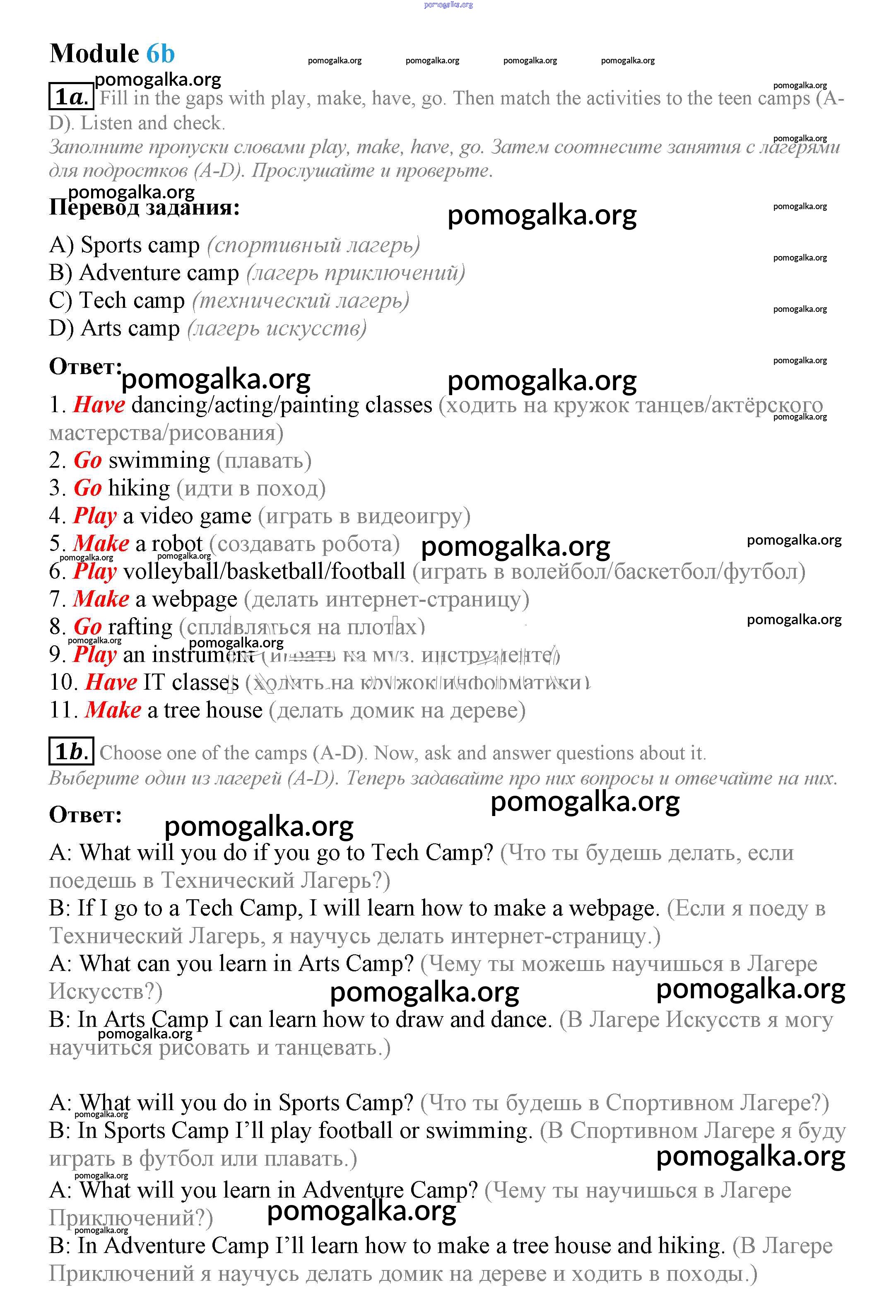 Готовые ответы - Английский язык 7 класс Ваулина Spotlight - часть 6b модуль 6 1