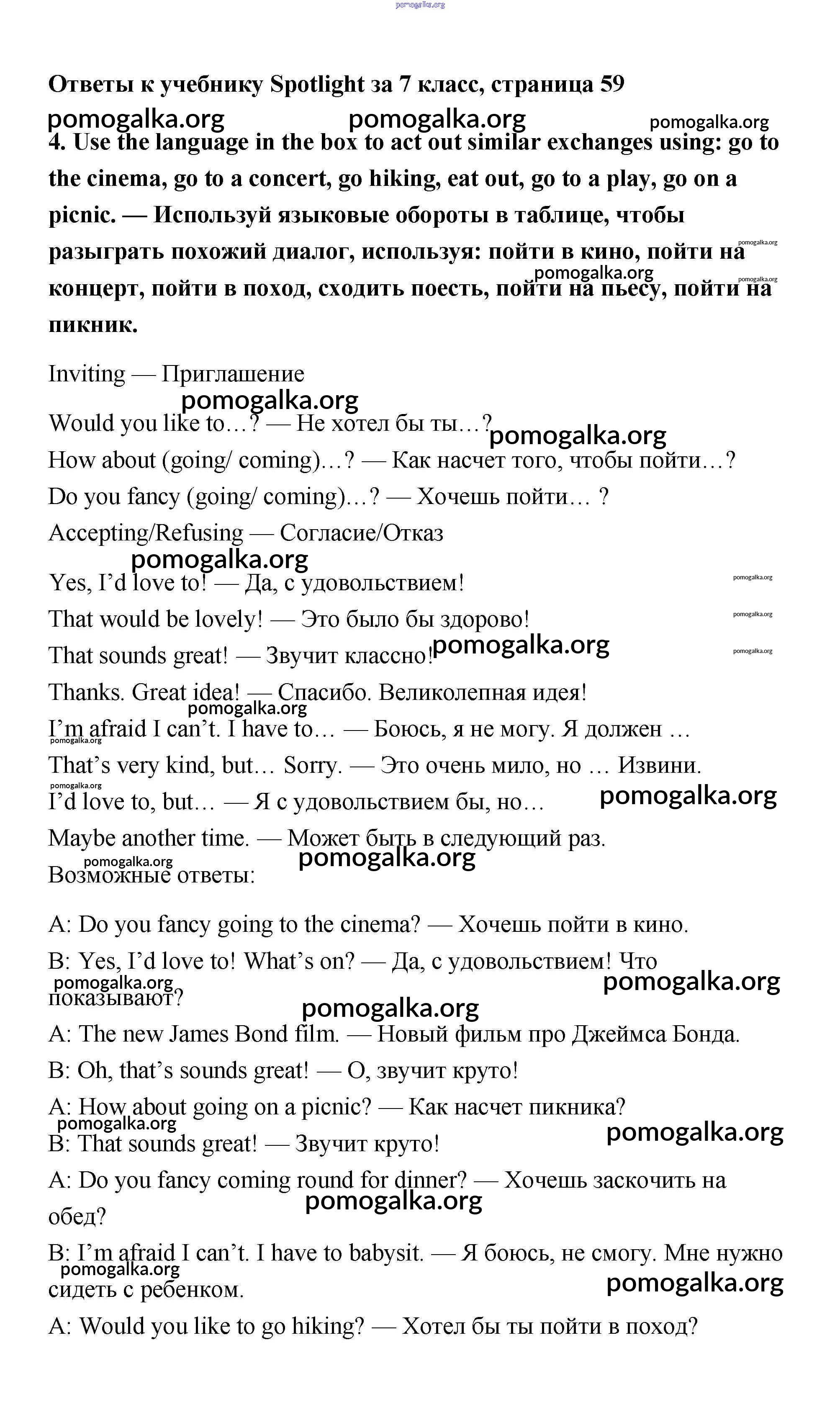 Готовые ответы - Английский язык 7 класс Ваулина Spotlight - часть 6b модуль 6 4