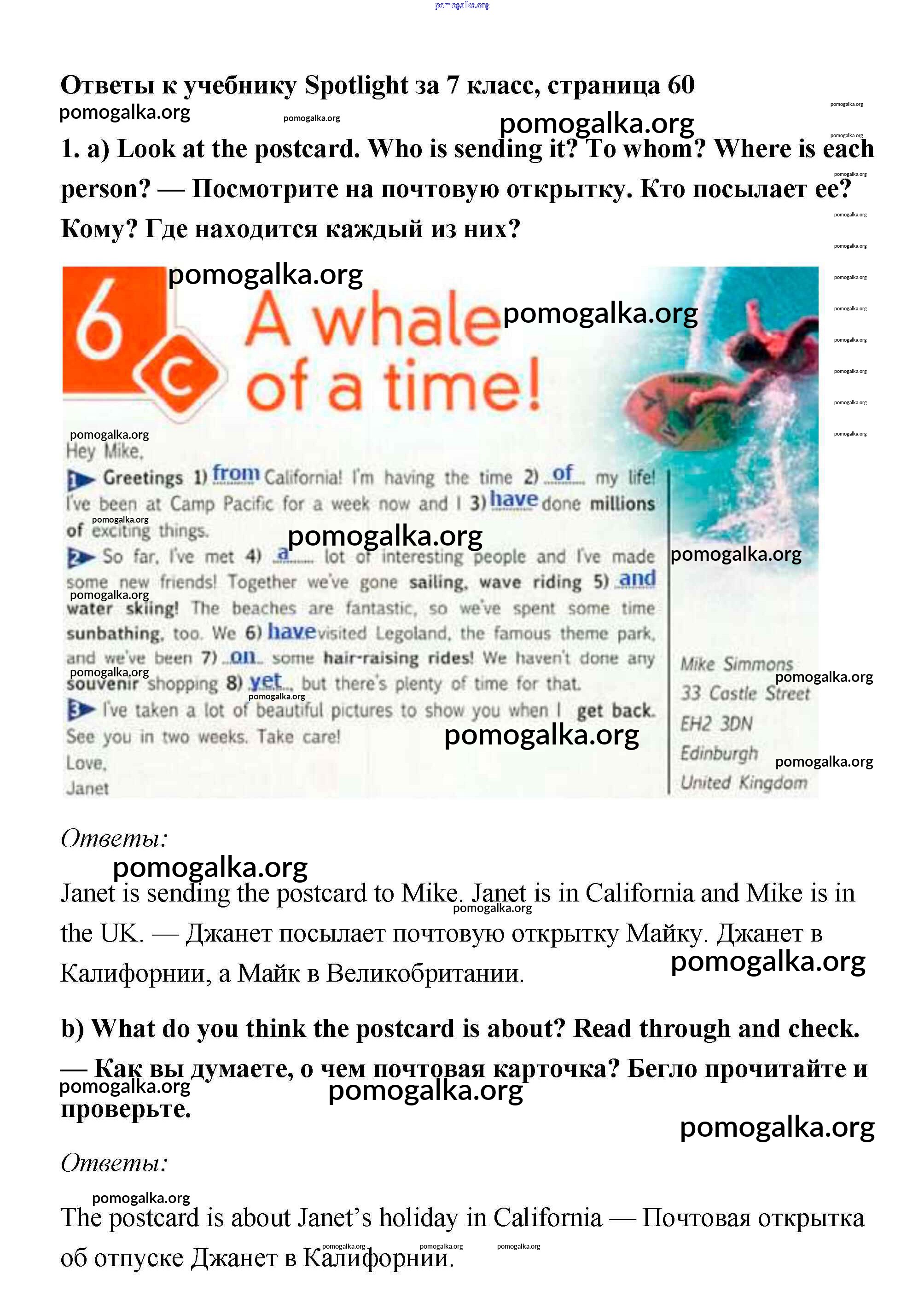 Готовые ответы - Английский язык 7 класс Ваулина Spotlight - часть 6c модуль 6 1