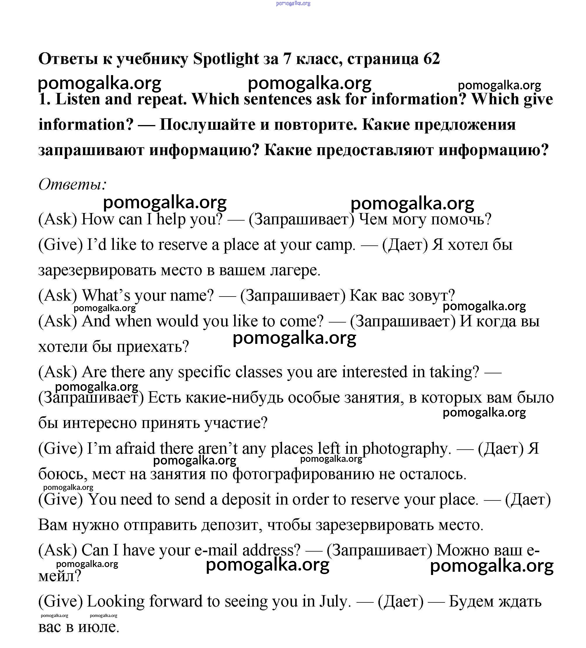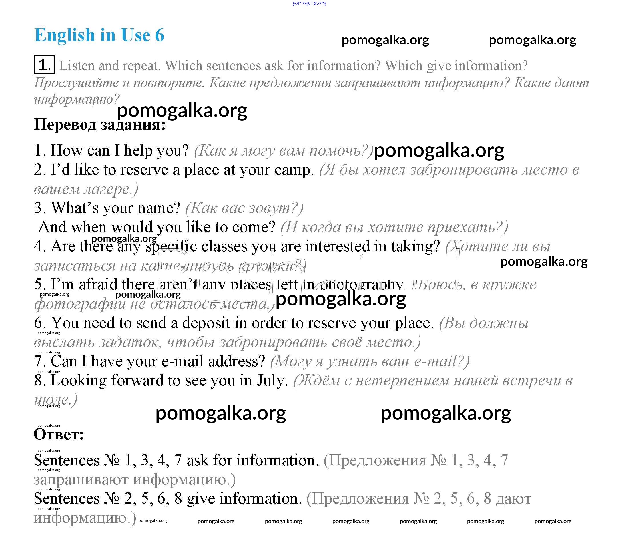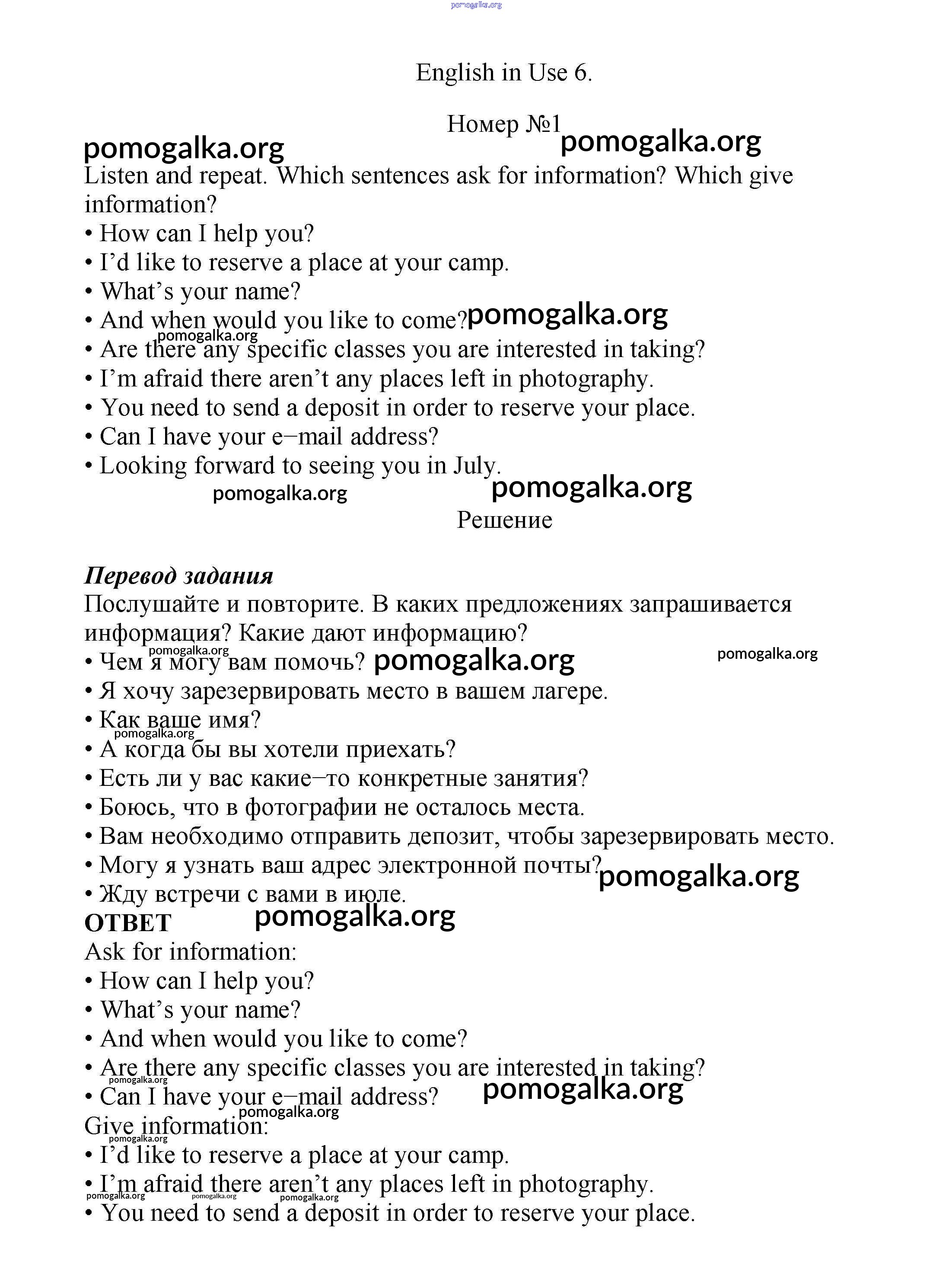 Готовые ответы - Английский язык 7 класс Ваулина Spotlight - English in use модуль 6 1
