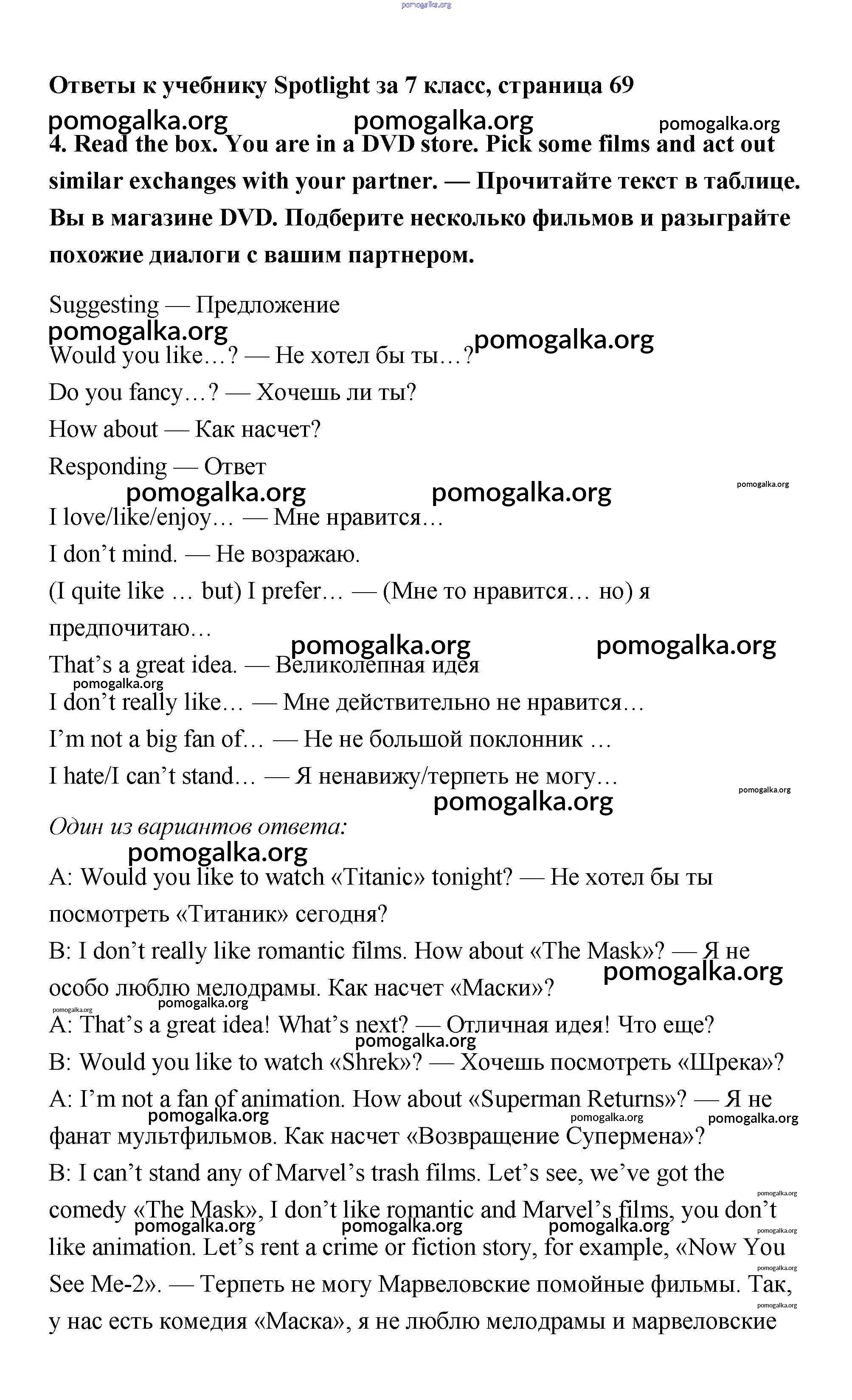 Готовые ответы - Английский язык 7 класс Ваулина Spotlight - часть 7b модуль 7 4