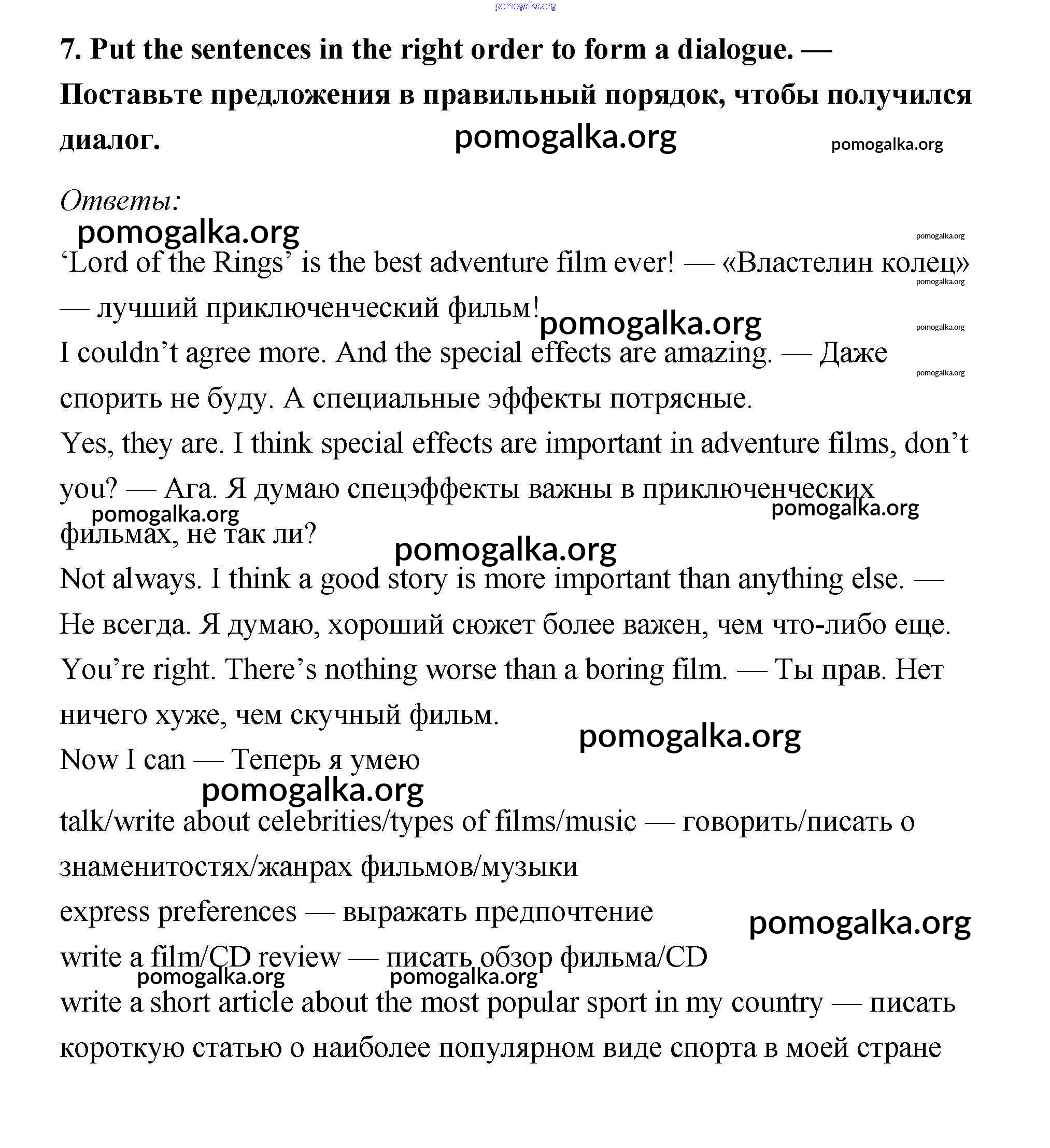 Готовые ответы - Английский язык 7 класс Ваулина Spotlight - Progress Check модуль 7 7