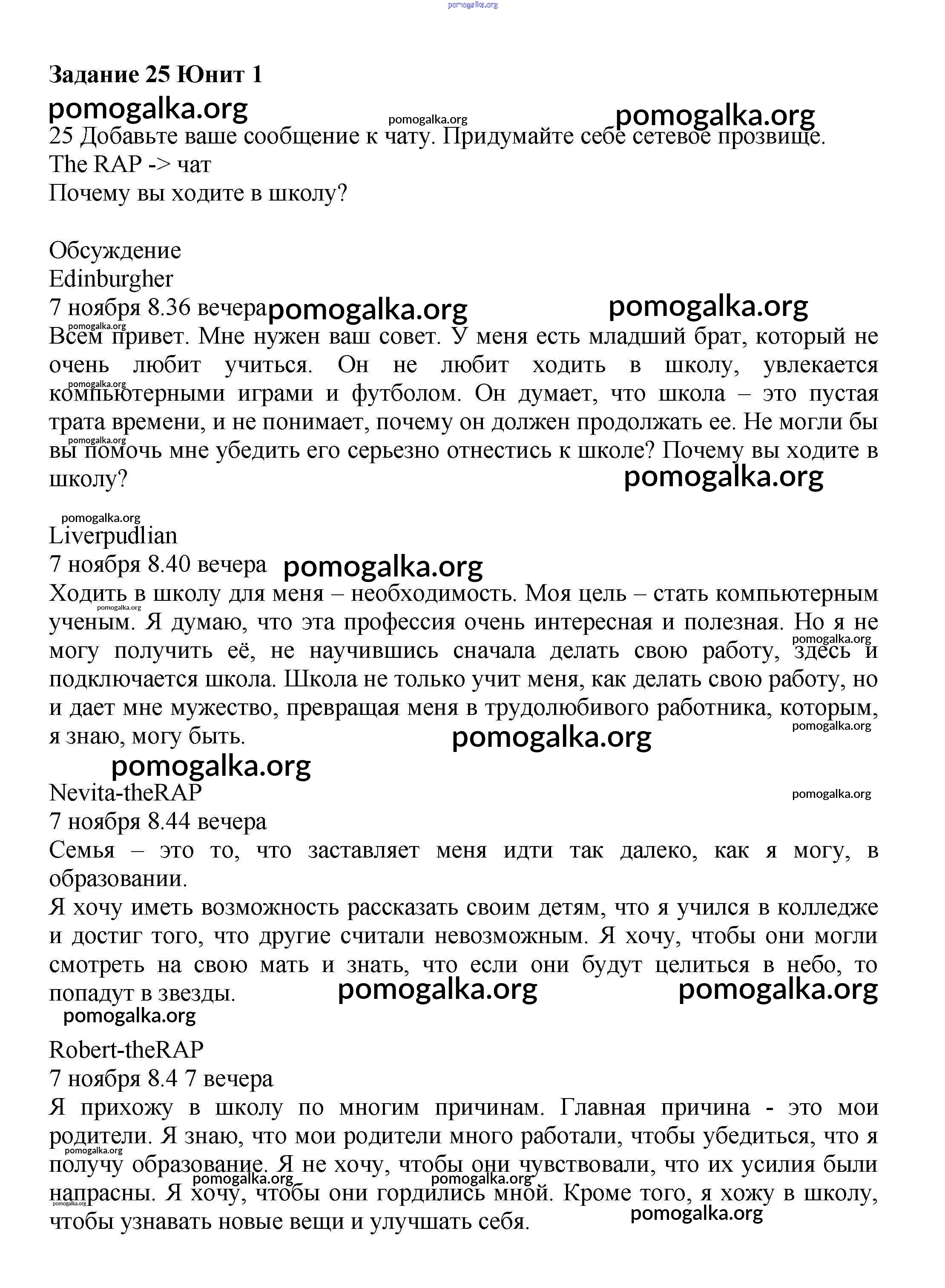Готовые ответы - Английский язык 7 класс Вербицкая М.В. - unit 1 часть 1 25