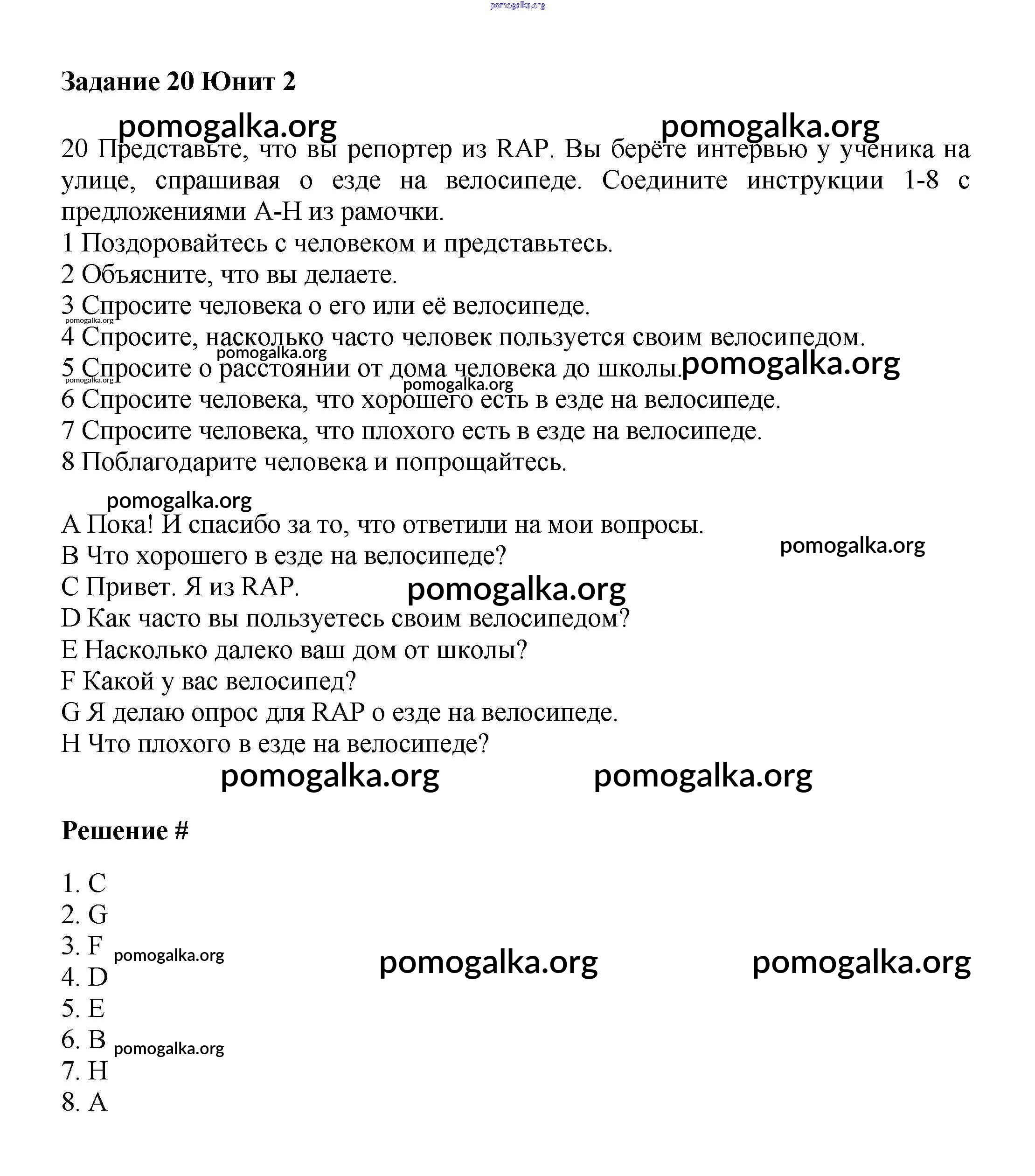 Готовые ответы - Английский язык 7 класс Вербицкая М.В. - unit 2 часть 1 20