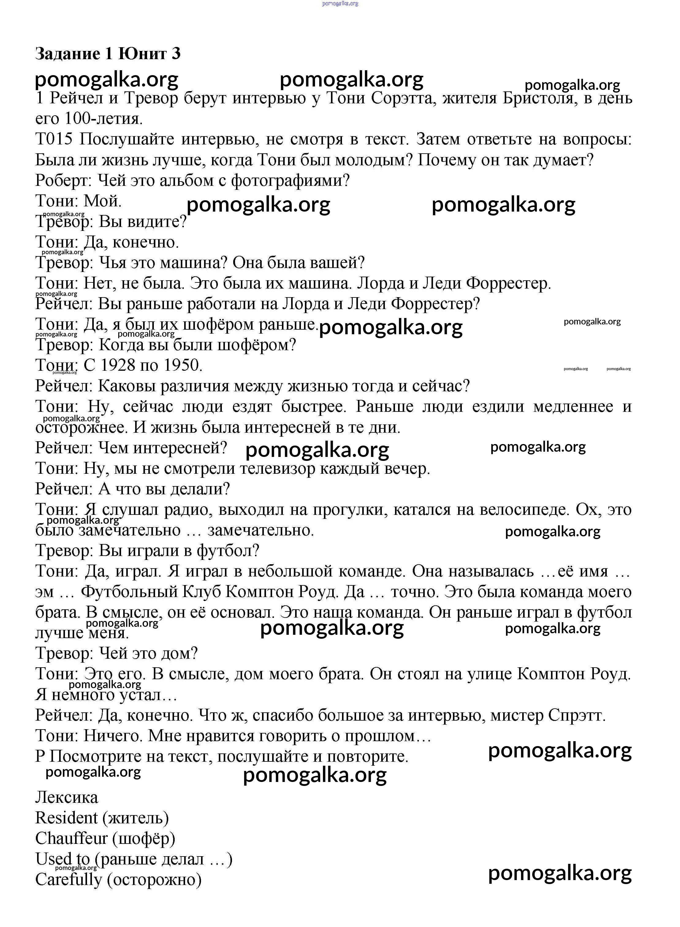 Unit 3. Talking about old times