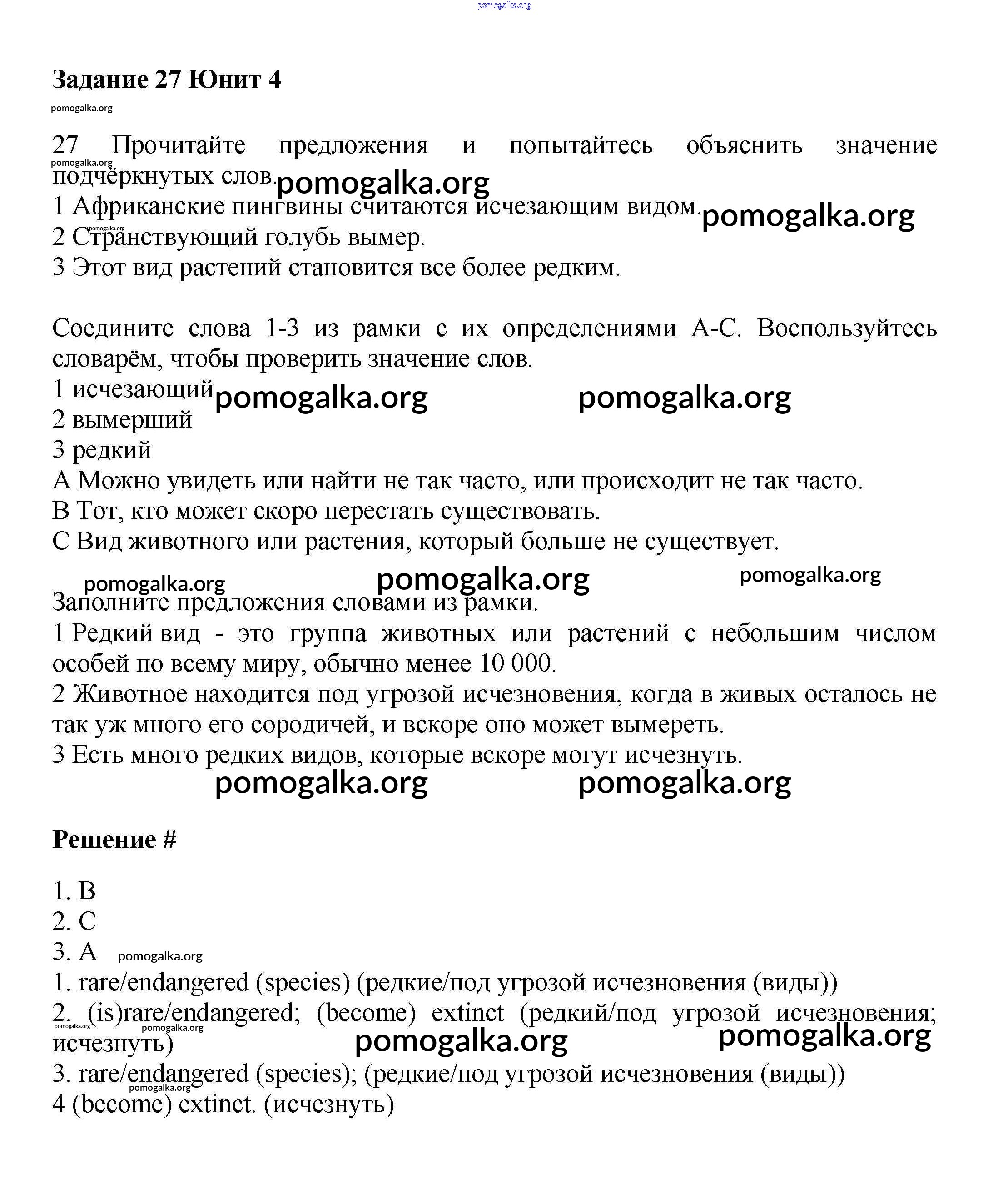 Готовые ответы - Английский язык 7 класс Вербицкая М.В. - unit 4 часть 1 27