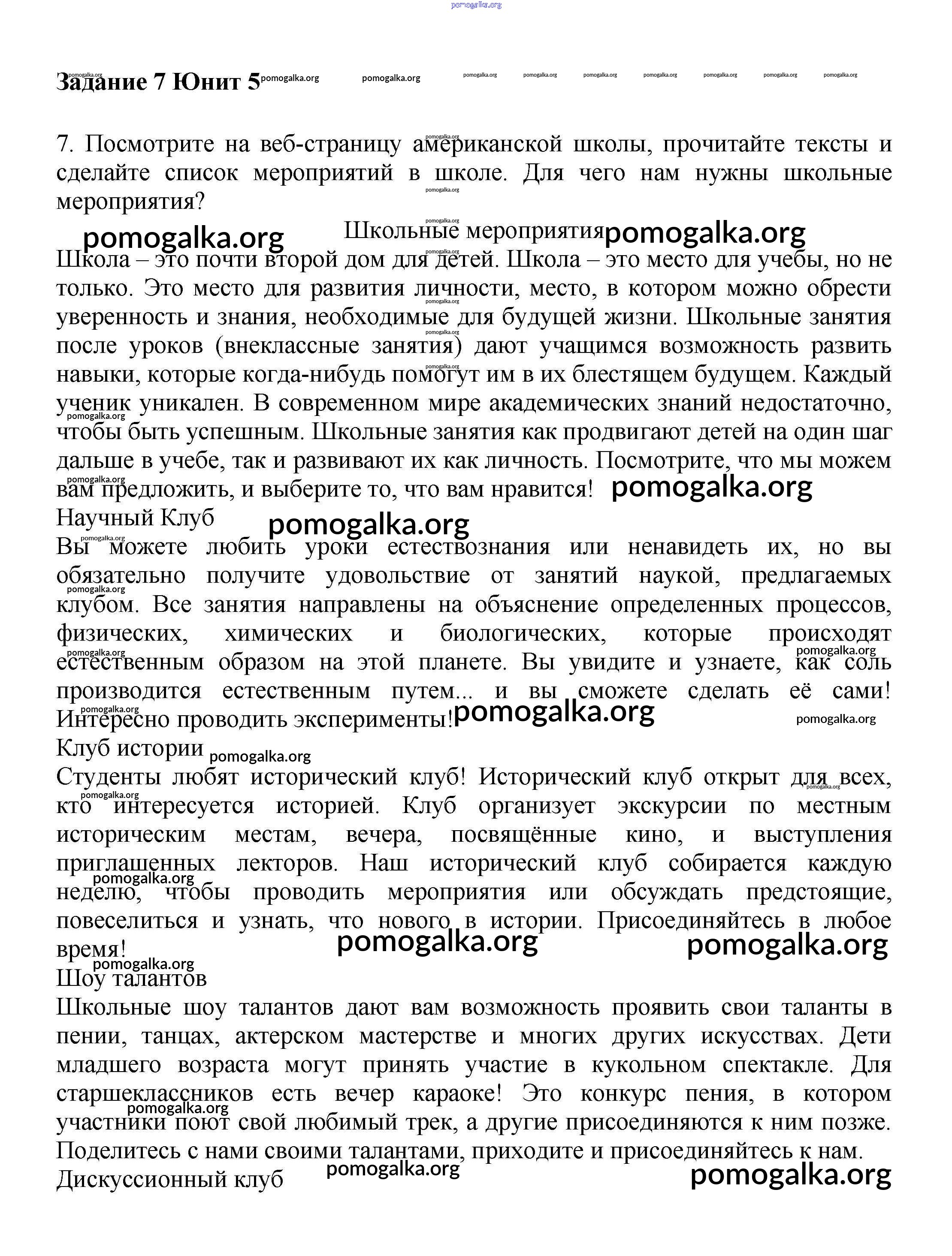 Готовые ответы - Английский язык 7 класс Вербицкая М.В. - unit 5 часть 1 7