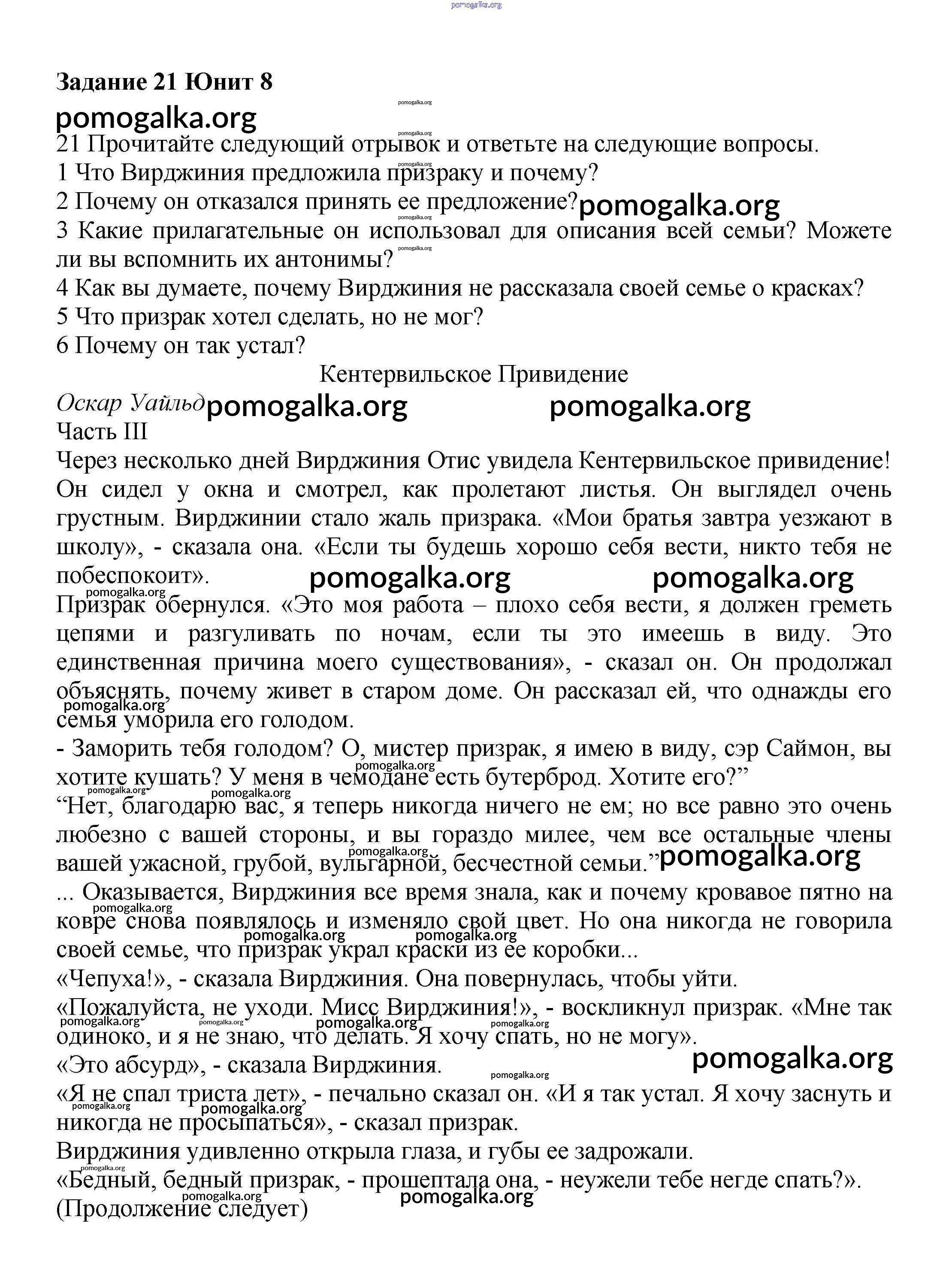 Готовые ответы - Английский язык 7 класс Вербицкая М.В. - unit 8 часть 1 21