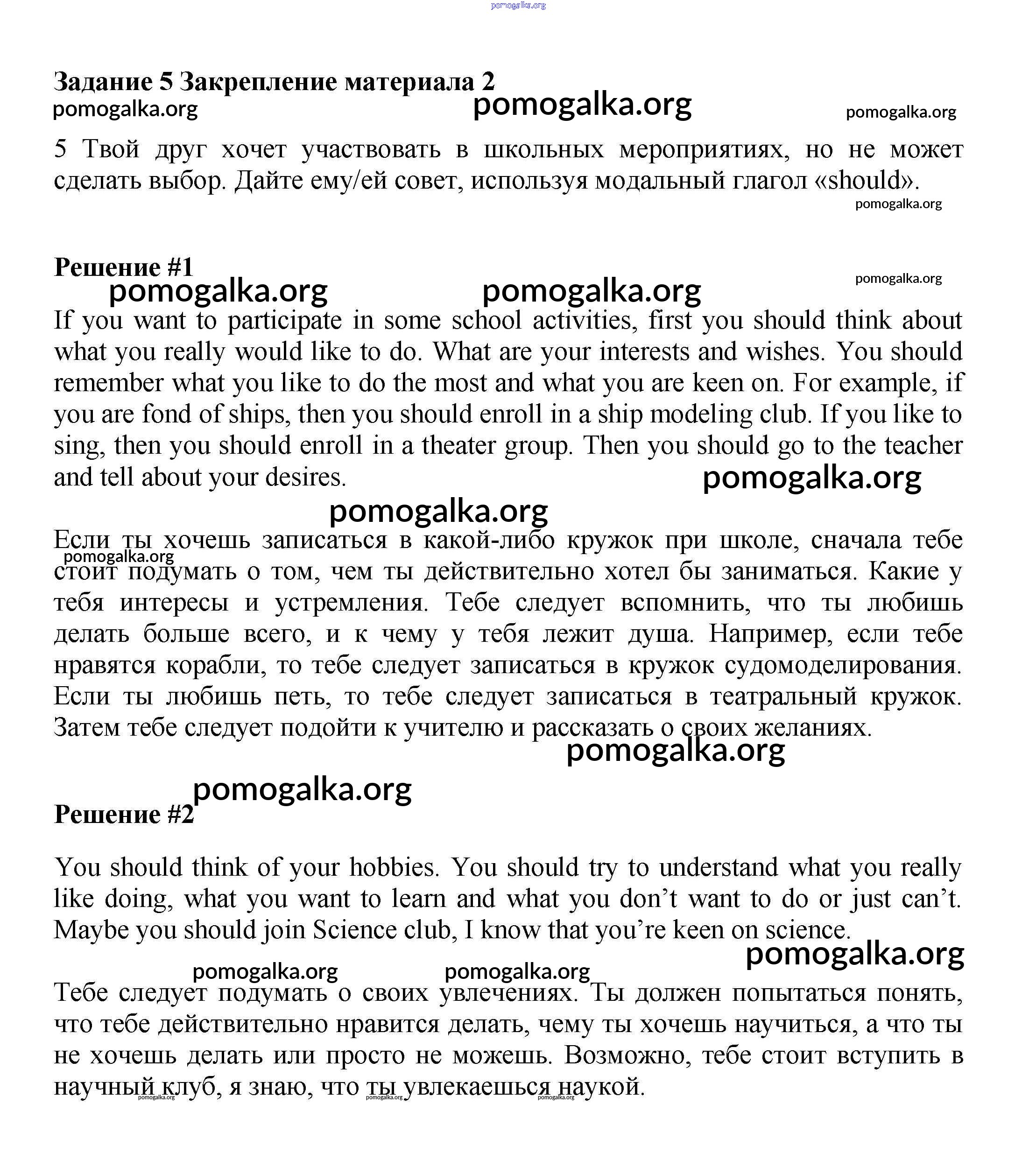 Готовые ответы - Английский язык 7 класс Вербицкая М.В. - consolidation 2 часть 1 5