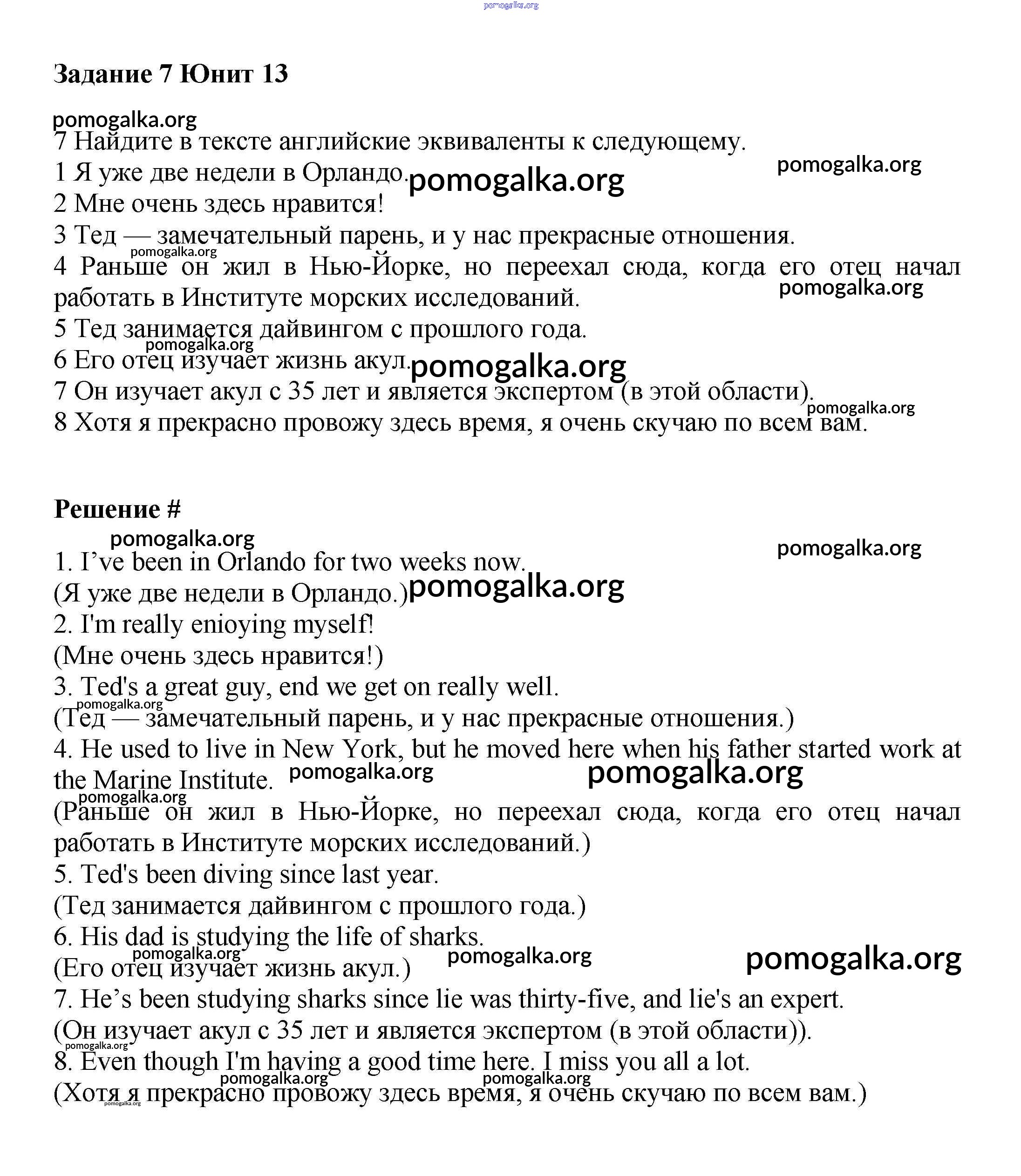Готовые ответы - Английский язык 7 класс Вербицкая М.В. - unit 13 часть 2 7