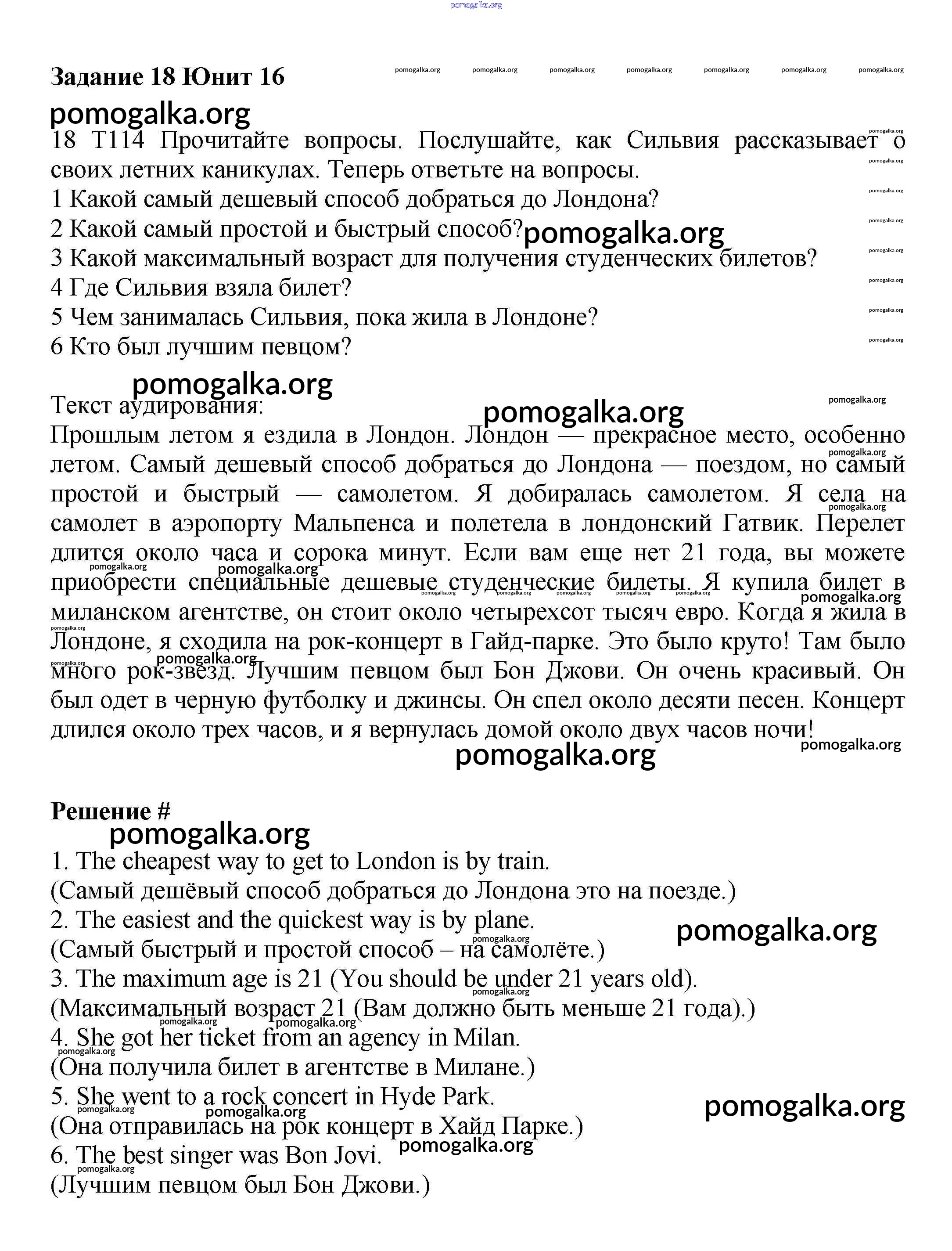 Готовые ответы - Английский язык 7 класс Вербицкая М.В. - unit 16 часть 2 18