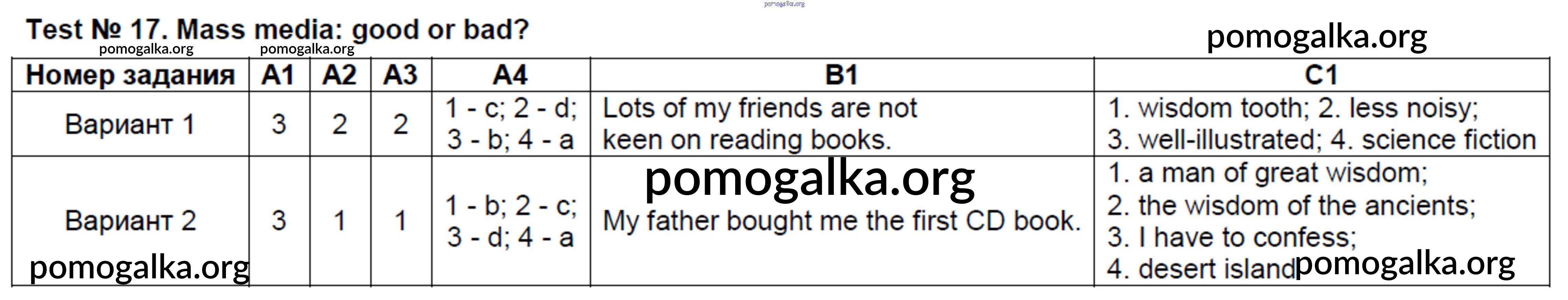 Готовые ответы - Английский язык 8 класс контрольно-измерительные материалы Лысакова Л.В. - тест 17