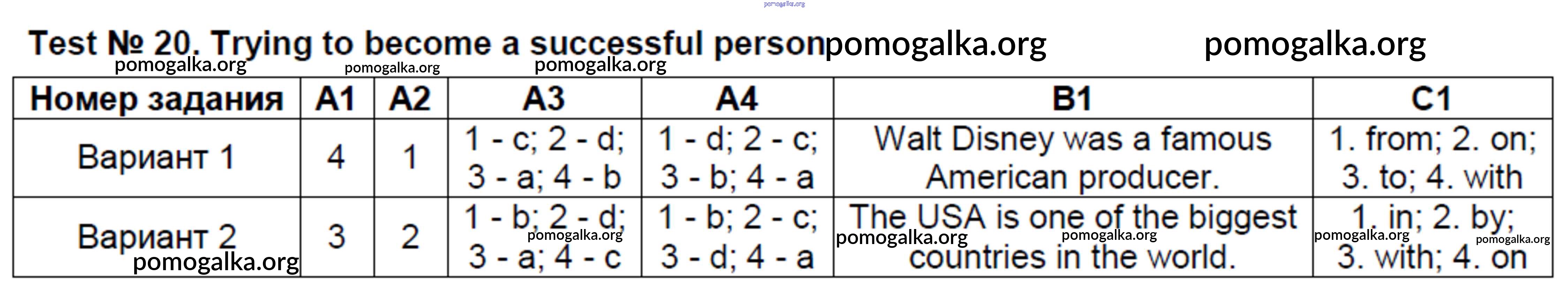 Готовые ответы - Английский язык 8 класс контрольно-измерительные материалы Лысакова Л.В. - тест 20