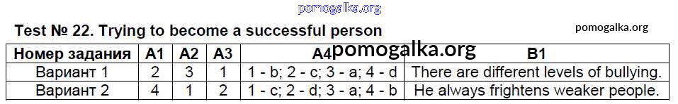 Готовые ответы - Английский язык 8 класс контрольно-измерительные материалы Лысакова Л.В. - тест 22