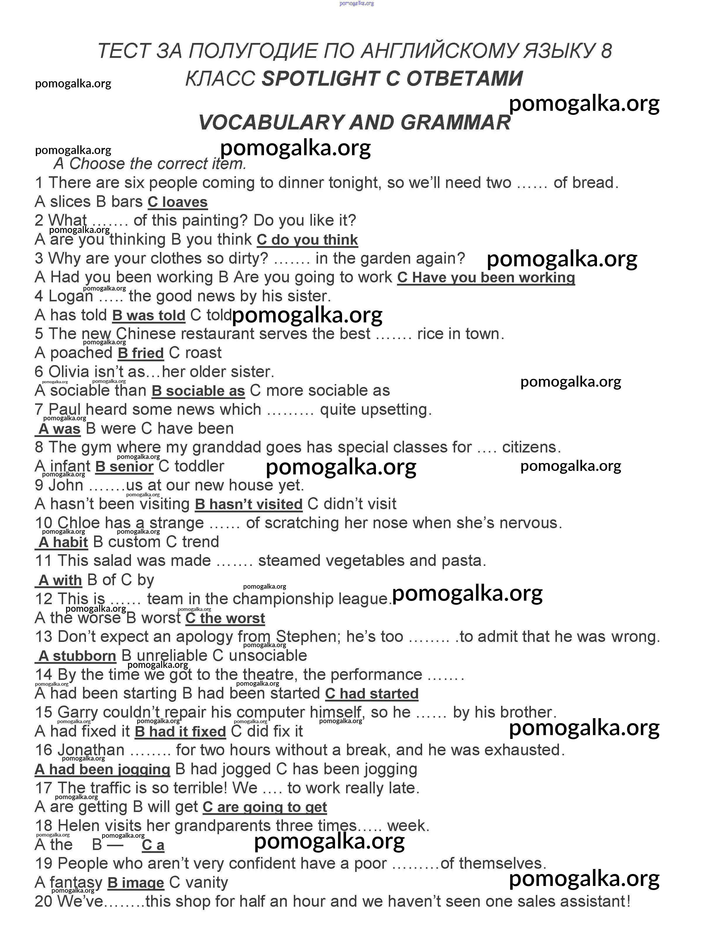 Готовые ответы - Английский язык 8 класс контрольные задания Ваулина Spotlight - тест за полугодие A