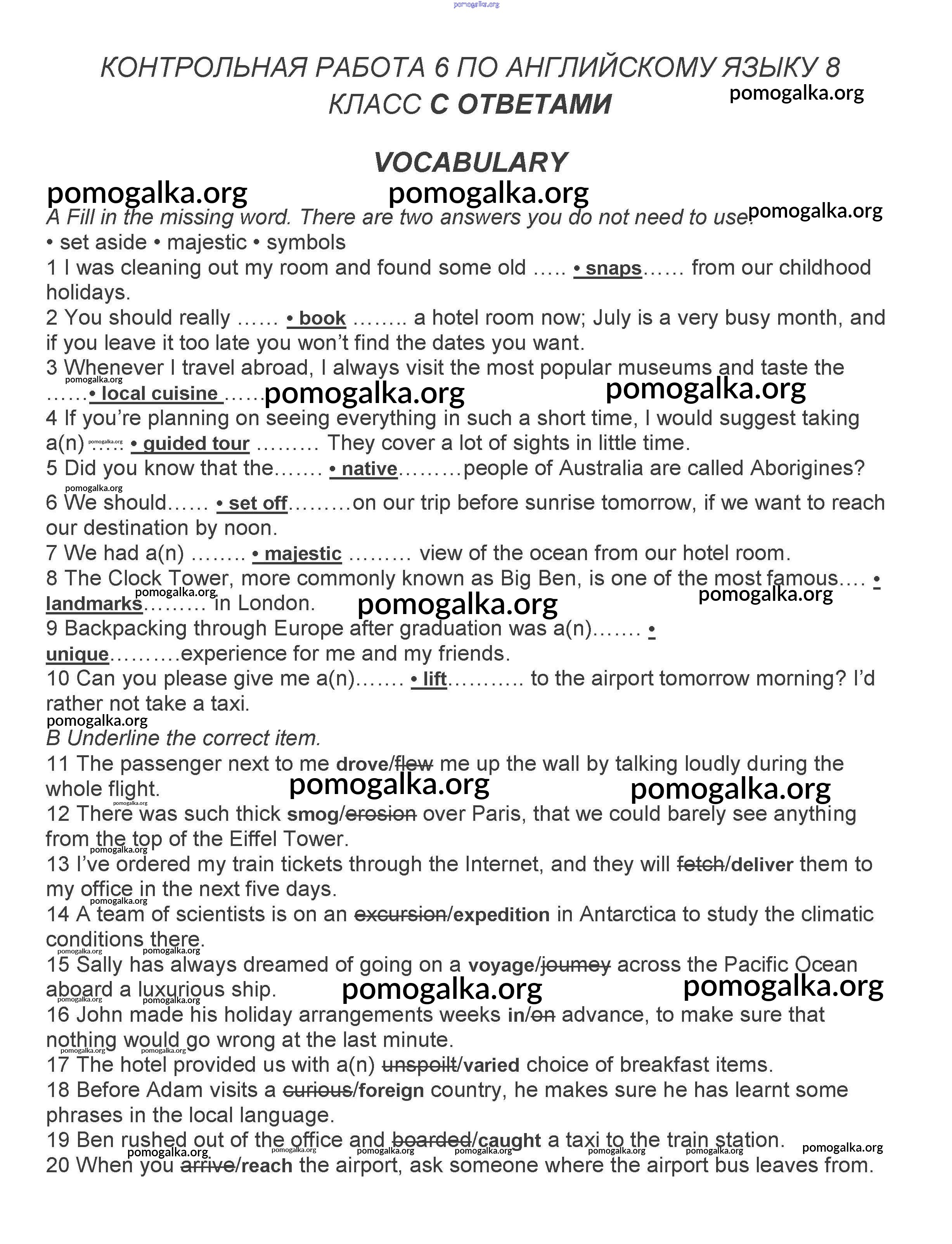 Готовые ответы - Английский язык 8 класс контрольные задания Ваулина Spotlight - контрольная работа 6 A, B