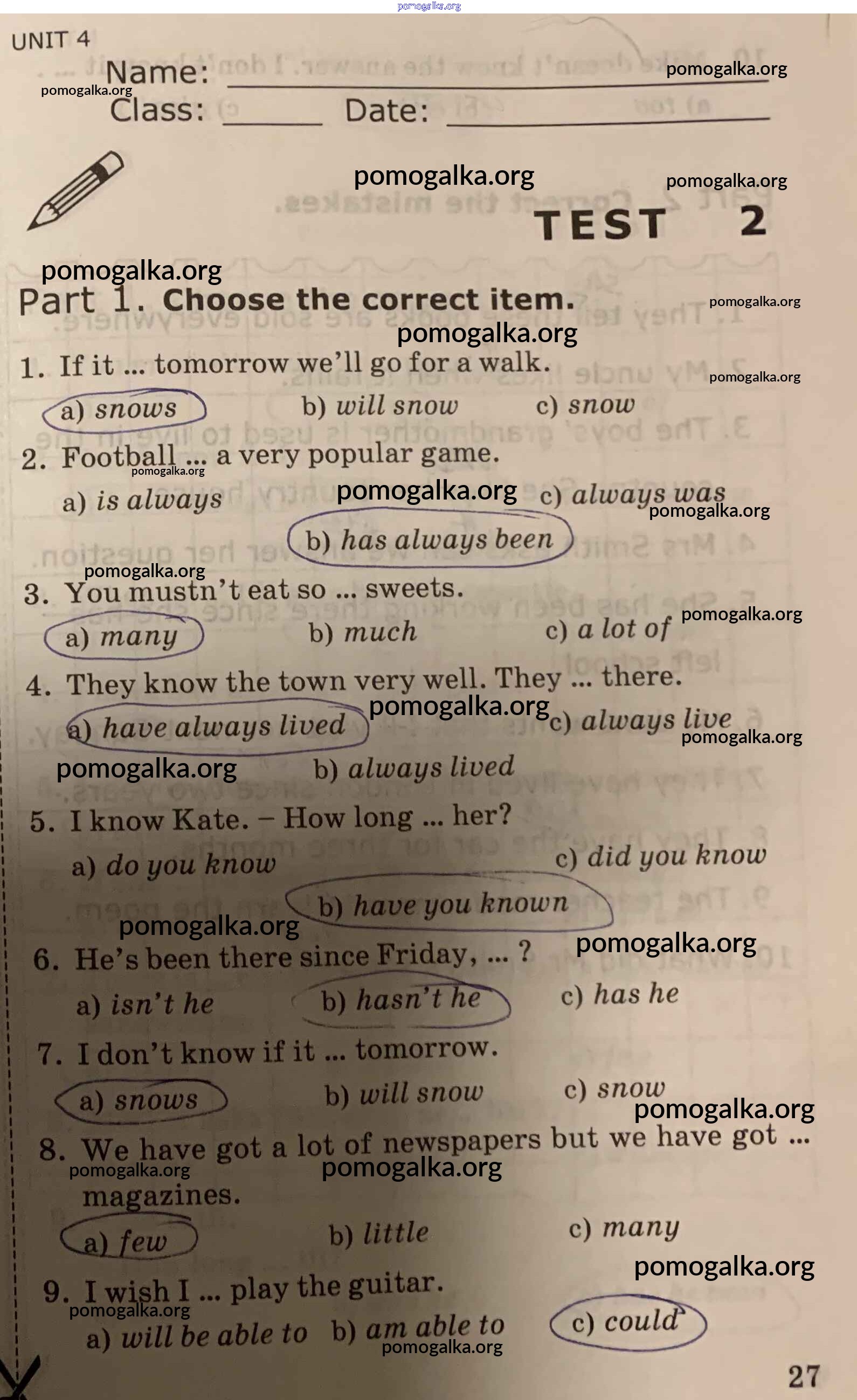 Готовые ответы - Английский язык. Грамматика английского языка 8 класс проверочные работы Барашкова Е.А. (к уч. Биболетовой) - страница 27