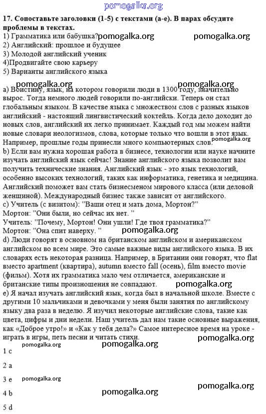 Готовые ответы - Английский язык 8 класс рабочая тетрадь Михеева И.В. - unit 2 тетрадь №1 17
