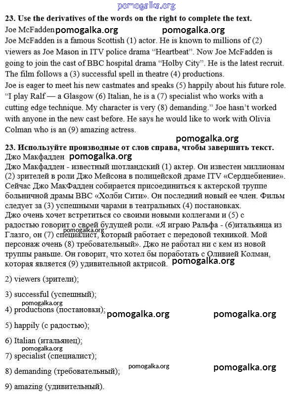 Готовые ответы - Английский язык 8 класс рабочая тетрадь Rainbow English Афанасьева О.В. - unit 3 23