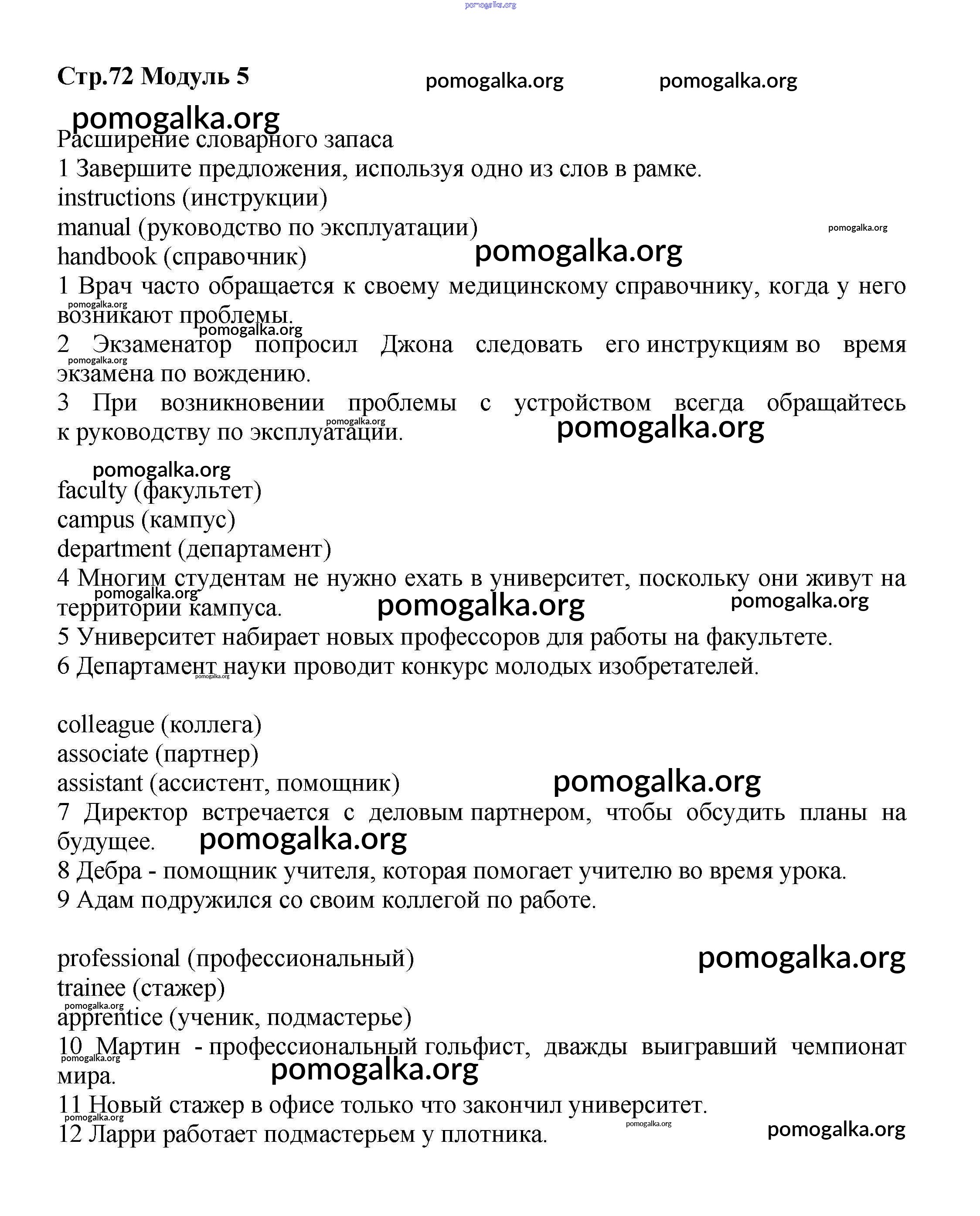 Готовые ответы - Английский язык 8 класс рабочая тетрадь Starlight Баранова К.М. - module 5 72