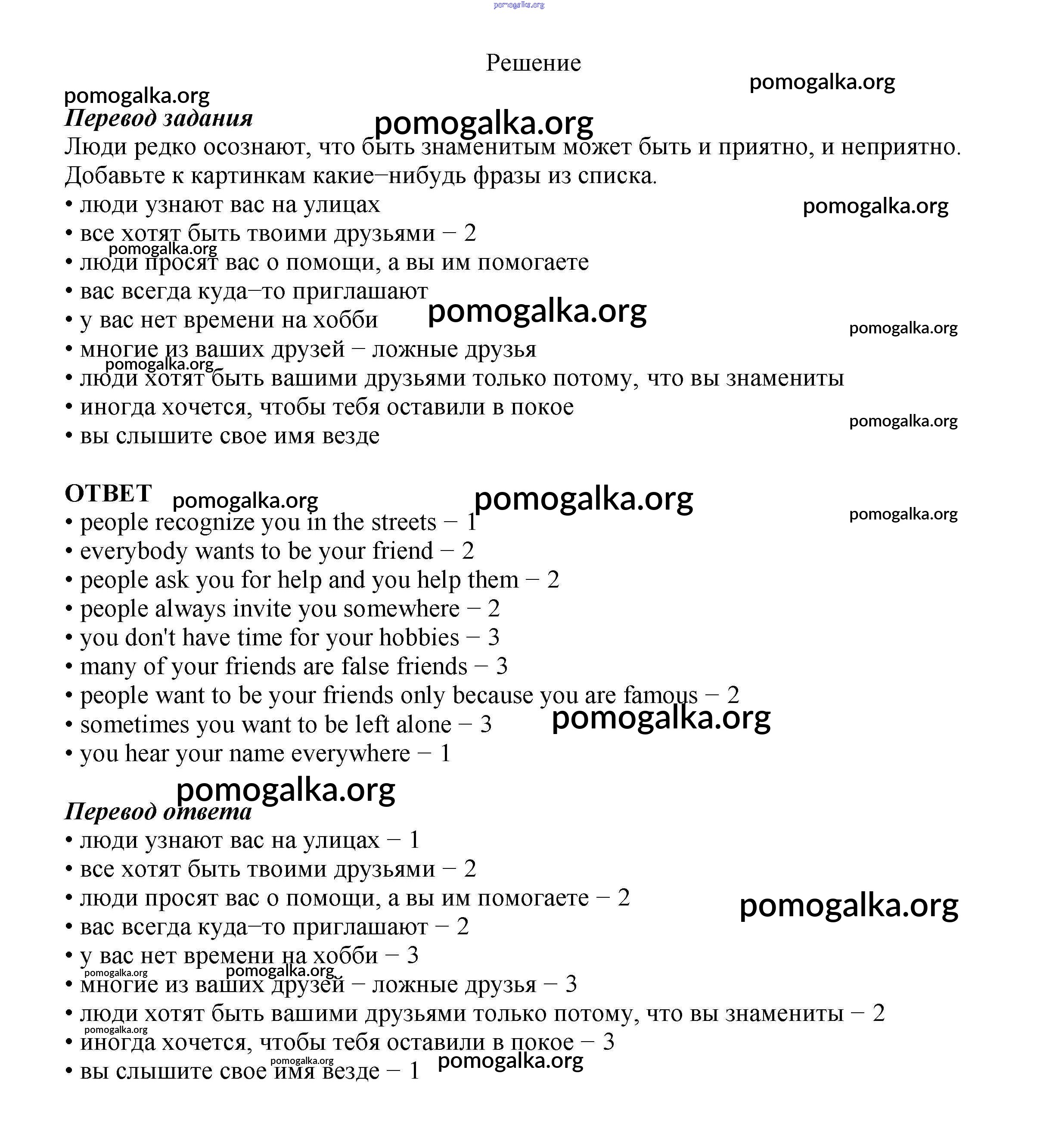 Готовые ответы - Английский язык 8 класс Enjoy English рабочая тетрадь Биболетова М.З. - section 1 unit 4 6