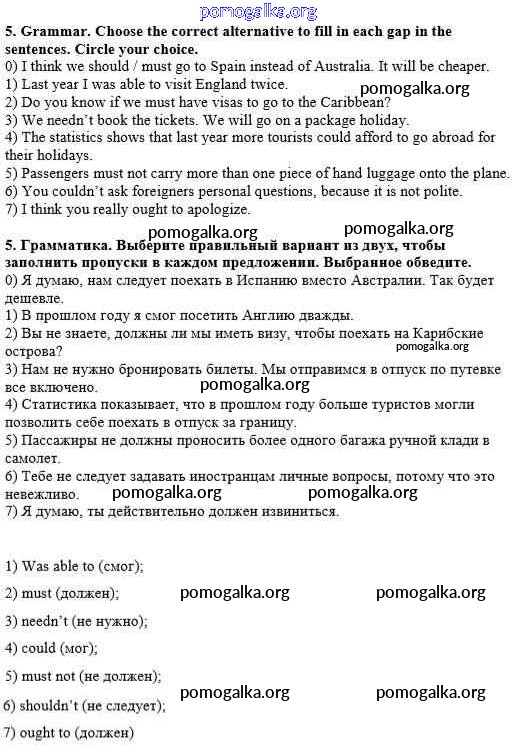 Готовые ответы - Английский язык 8 класс рабочая тетрадь Кузовлев В.П. - consolidation unit 3 5