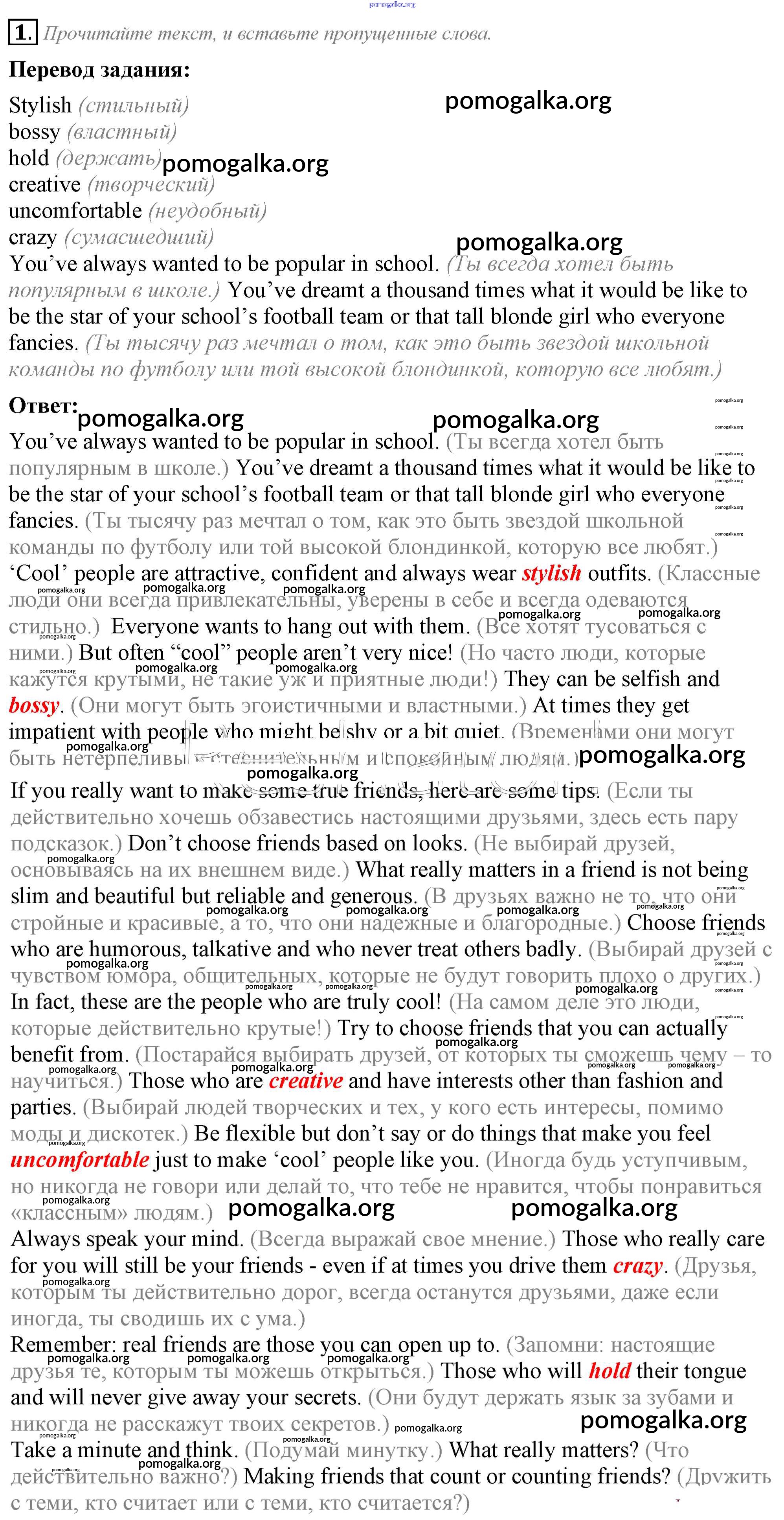 Готовые ответы - Английский язык 8 класс рабочая тетрадь Spotlight Ваулина Ю.Е. - часть 1g module 1 1