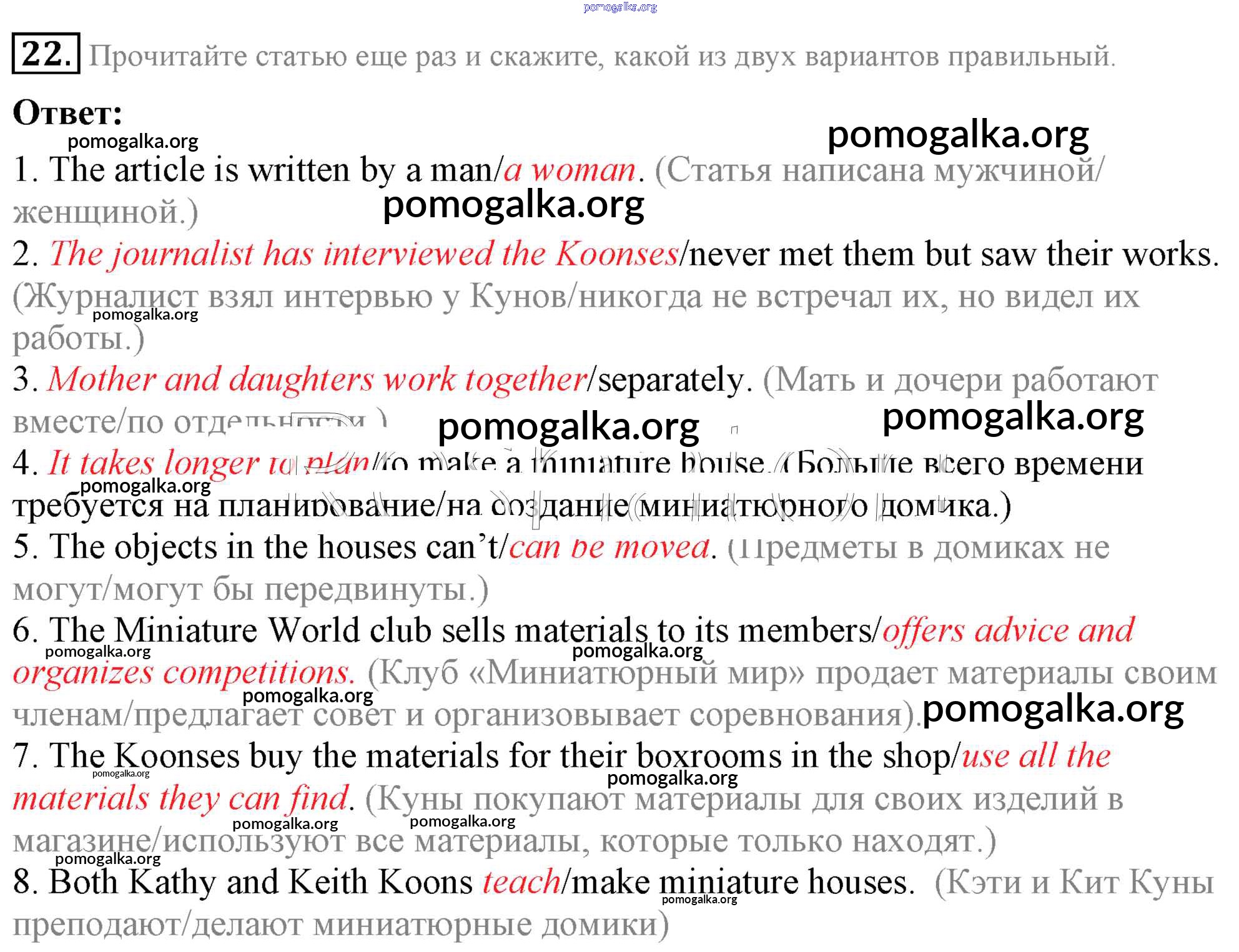Готовые ответы - Английский язык 8 класс Афанасьева (Углубленный уровень) - unit 1 22