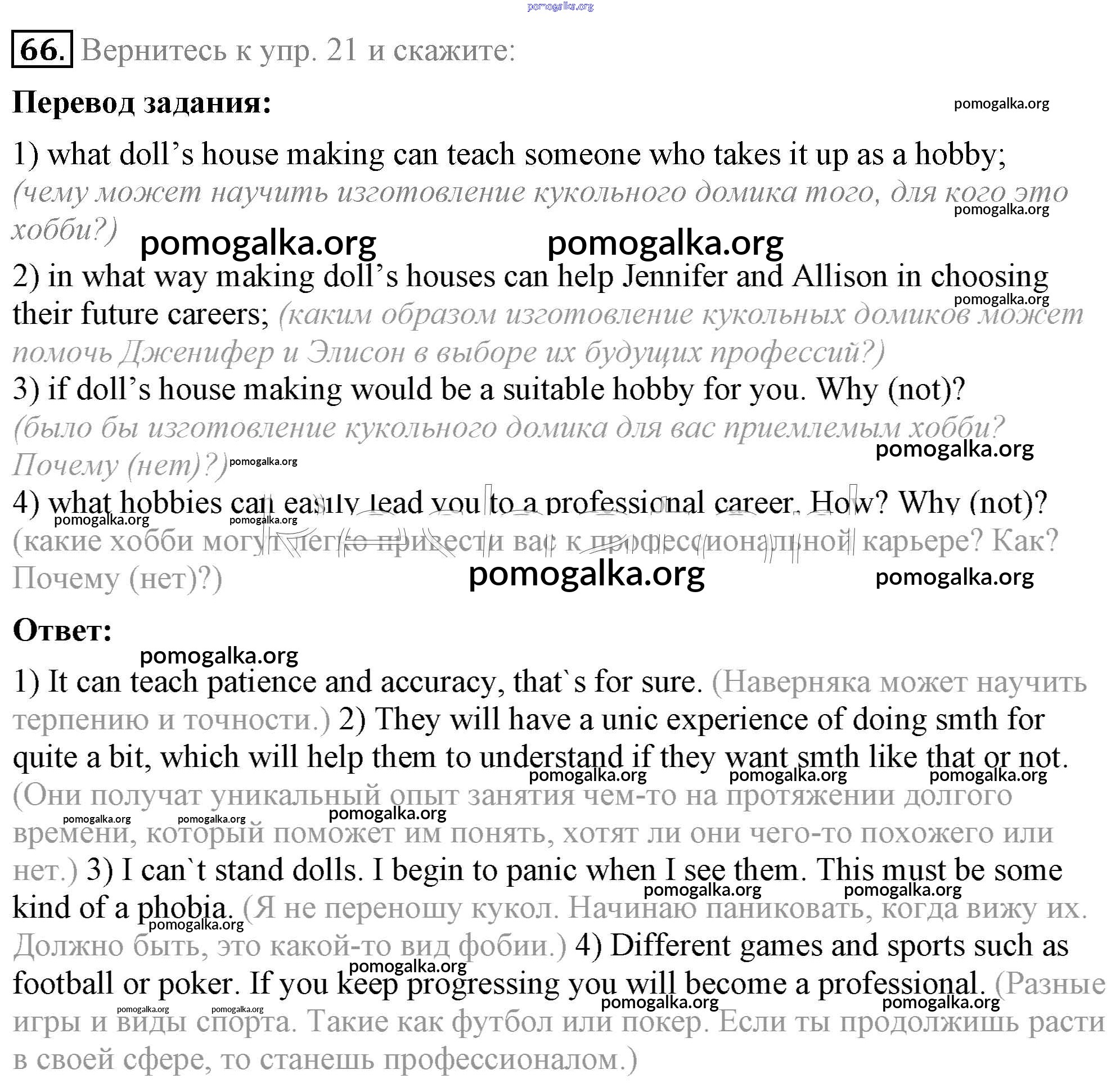 Готовые ответы - Английский язык 8 класс Афанасьева (Углубленный уровень) - unit 1 66