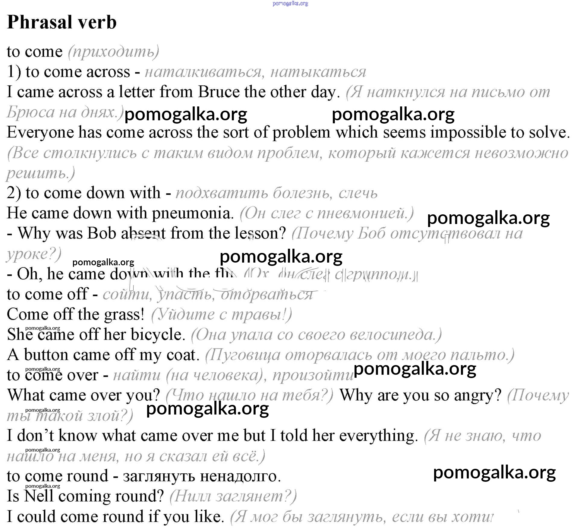 Готовые ответы - Английский язык 8 класс Афанасьева (Углубленный уровень) - unit 3 Phrasal Verb
