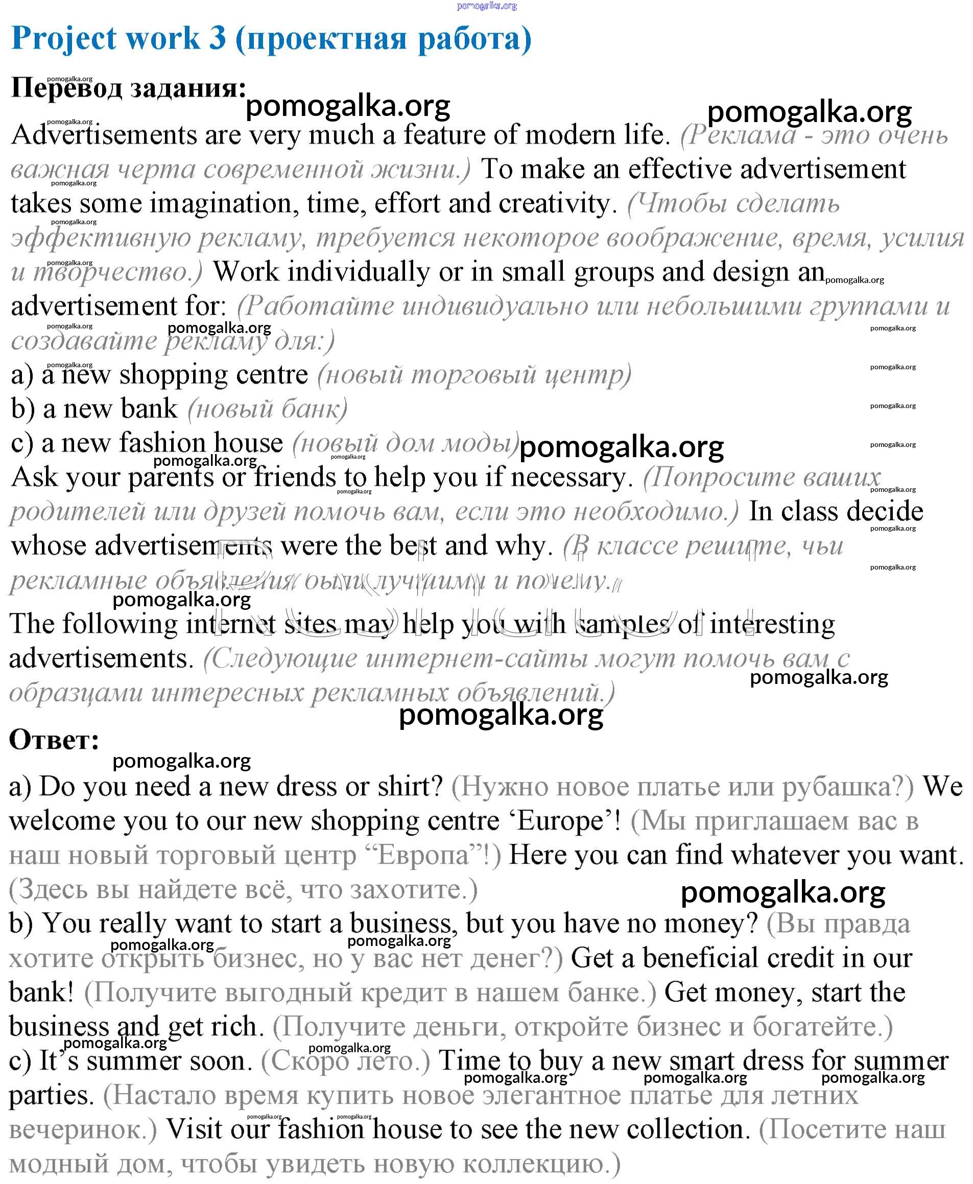 Готовые ответы - Английский язык 8 класс Афанасьева (Углубленный уровень) - unit 3 Project Work