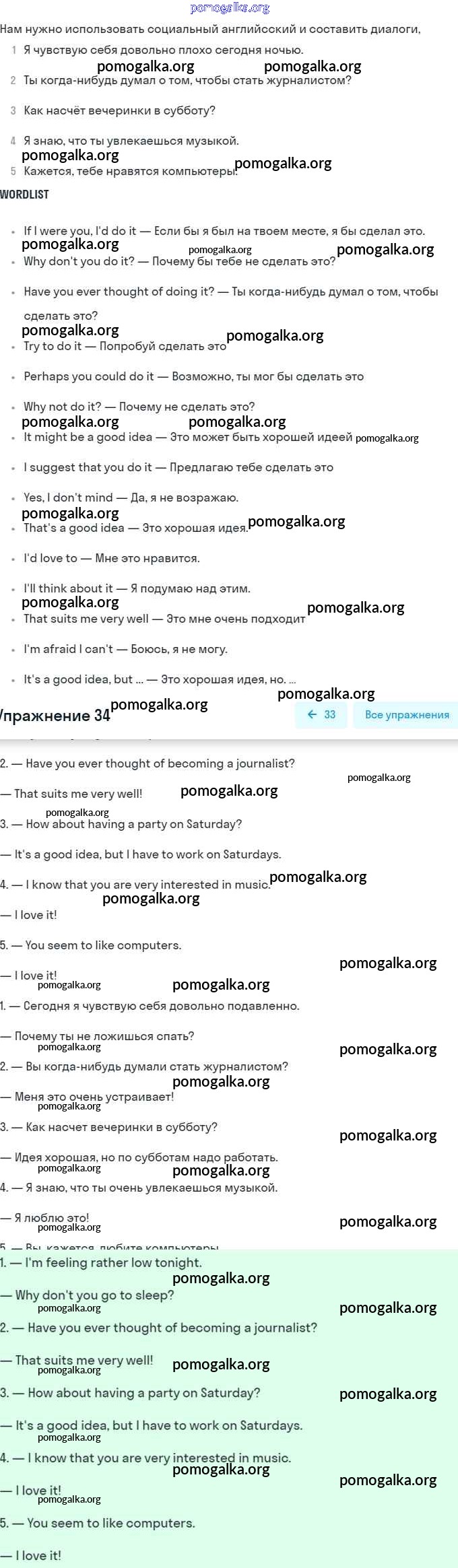 Готовые ответы - Английский язык 8 класс Афанасьева (Углубленный уровень) - unit 1 34