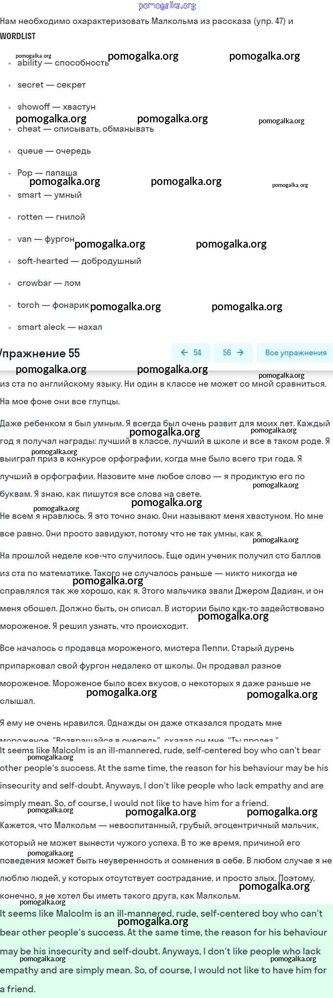 Готовые ответы - Английский язык 8 класс Афанасьева (Углубленный уровень) - unit 1 55